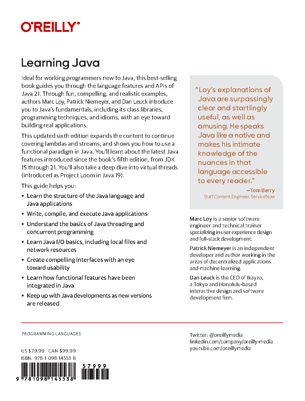 Master the fundamentals of Java with the newly updated 'Learning Java, Sixth Edition' for the 2025/2026 academic year. Authored by experts Marc Loy, Patrick Niemeyer, and Daniel Leuck, this guide is an essential resource for students aiming to pass their programming exams on the first try. It offers a clear and practical introduction to real-world Java programming, covering core concepts, essential libraries, and modern development techniques. Get the knowledge you need to succeed and avoid costly resits with this comprehensive study companion.