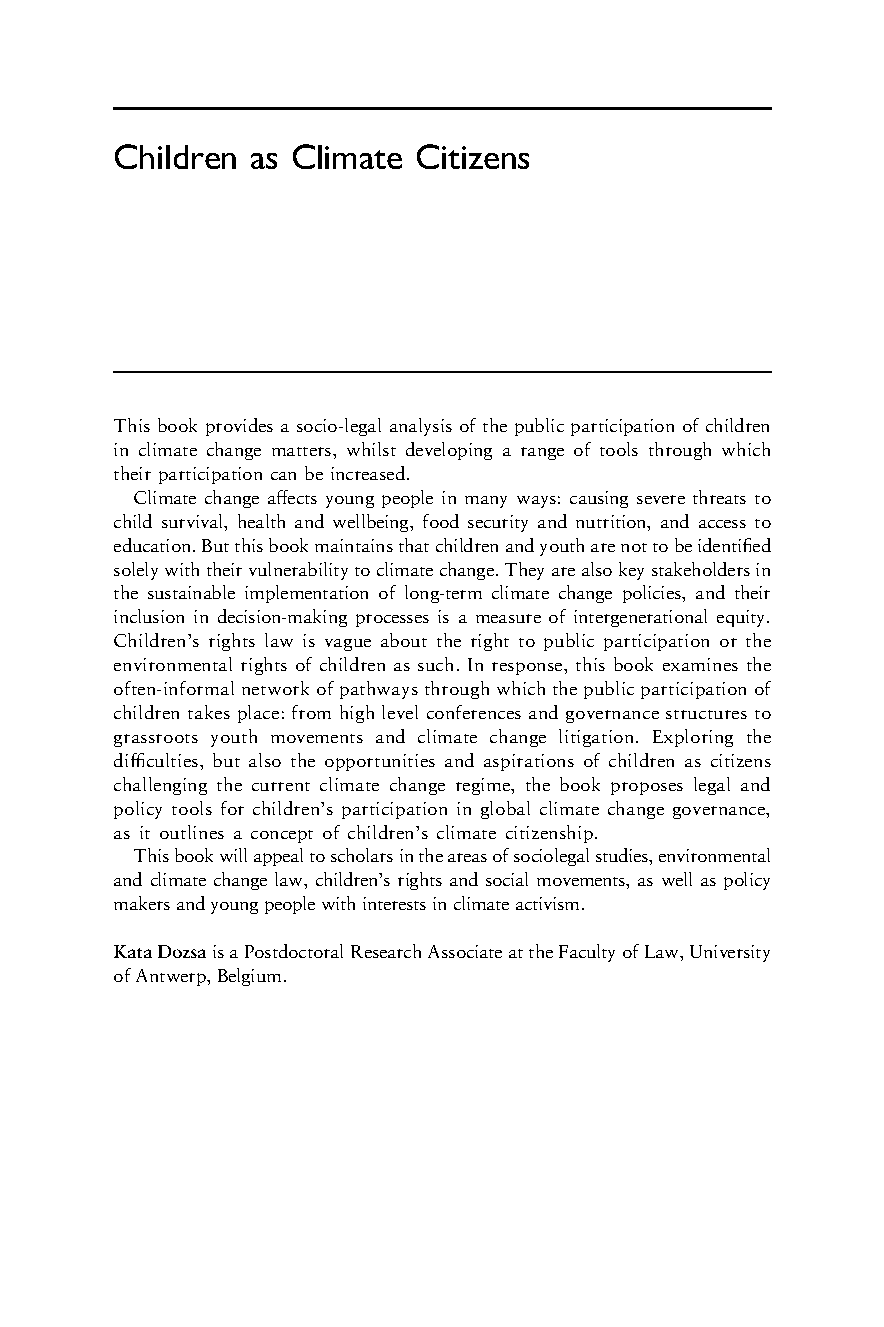 Master Climate Law & Policy with 'Children as Climate Citizens' 1st Edition by Kata Dozsa | 2025/2026 Exam Success Guide