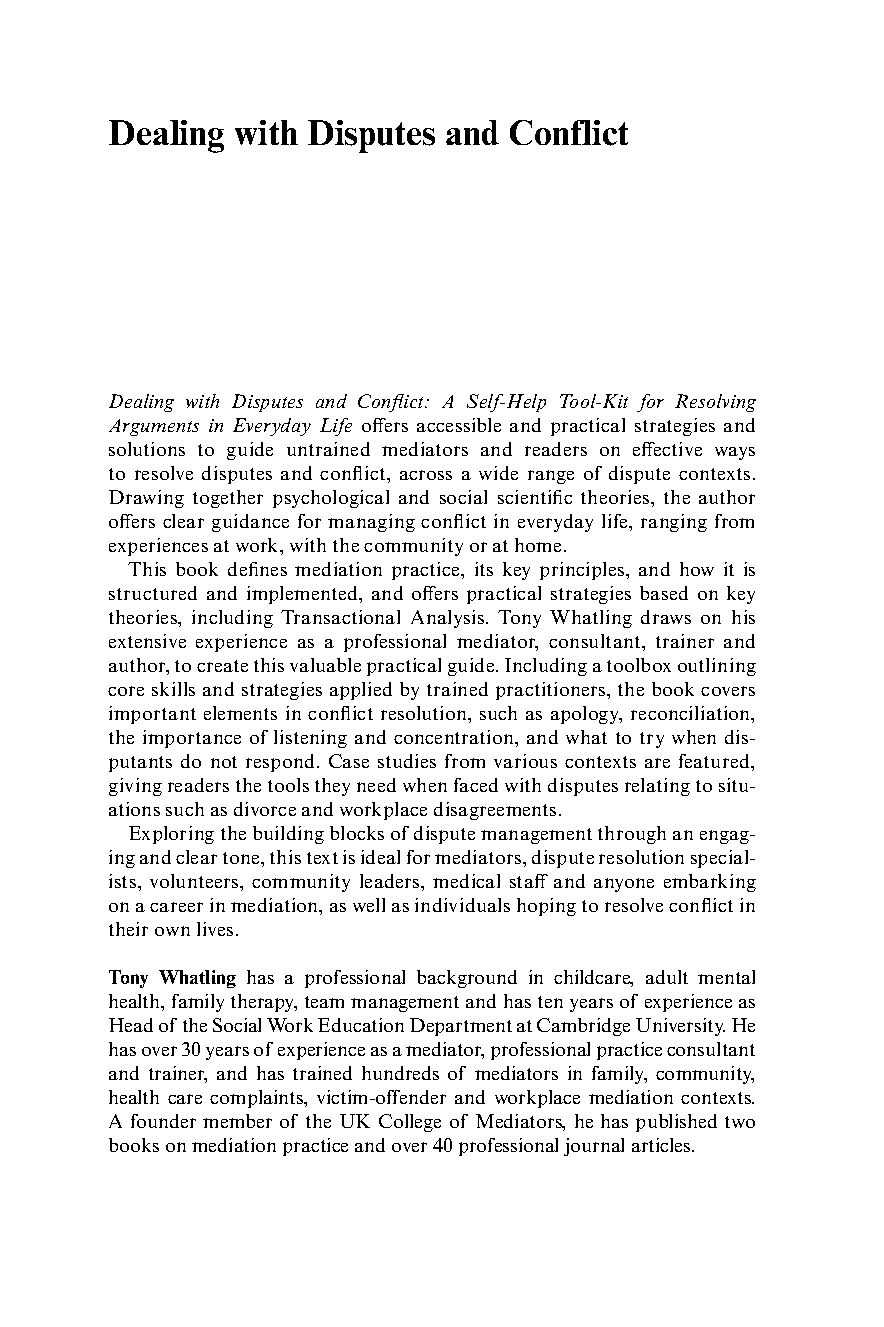 Master Conflict Resolution for Exams: A Guide to 'Dealing with Disputes and Conflict', 1st Edition by Tony Whatling | 2025/2026 Academic Resource
