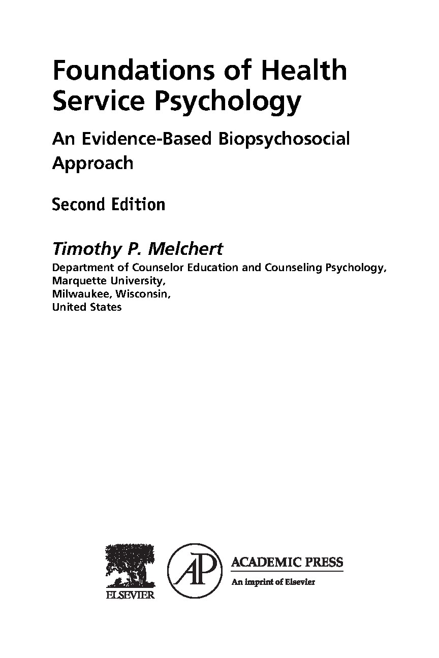 Test Bank for Foundations of Health Service Psychology: An Evidence-Based Biopsychosocial Approach, 2nd Edition by Timothy P. Melchert