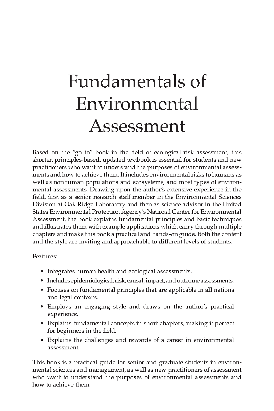 Test Bank for Fundamentals of Environmental Assessment, 1st Edition by Glenn W. Suter II