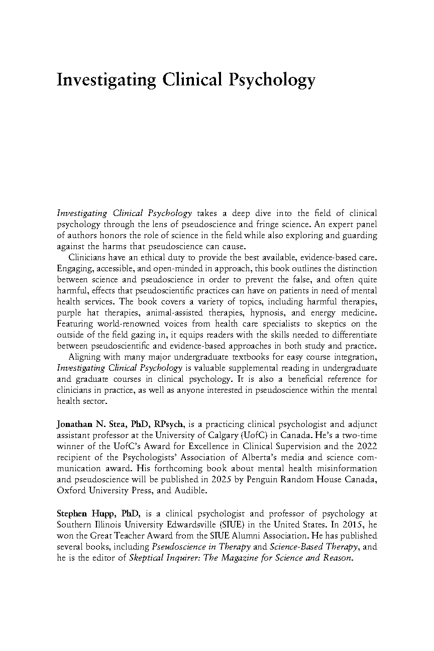 Investigating Clinical Psychology (2025/2026 Edition) by Jonathan N. Stea & Stephen Hupp | Exam Success Guide to Pseudoscience and Controversies
