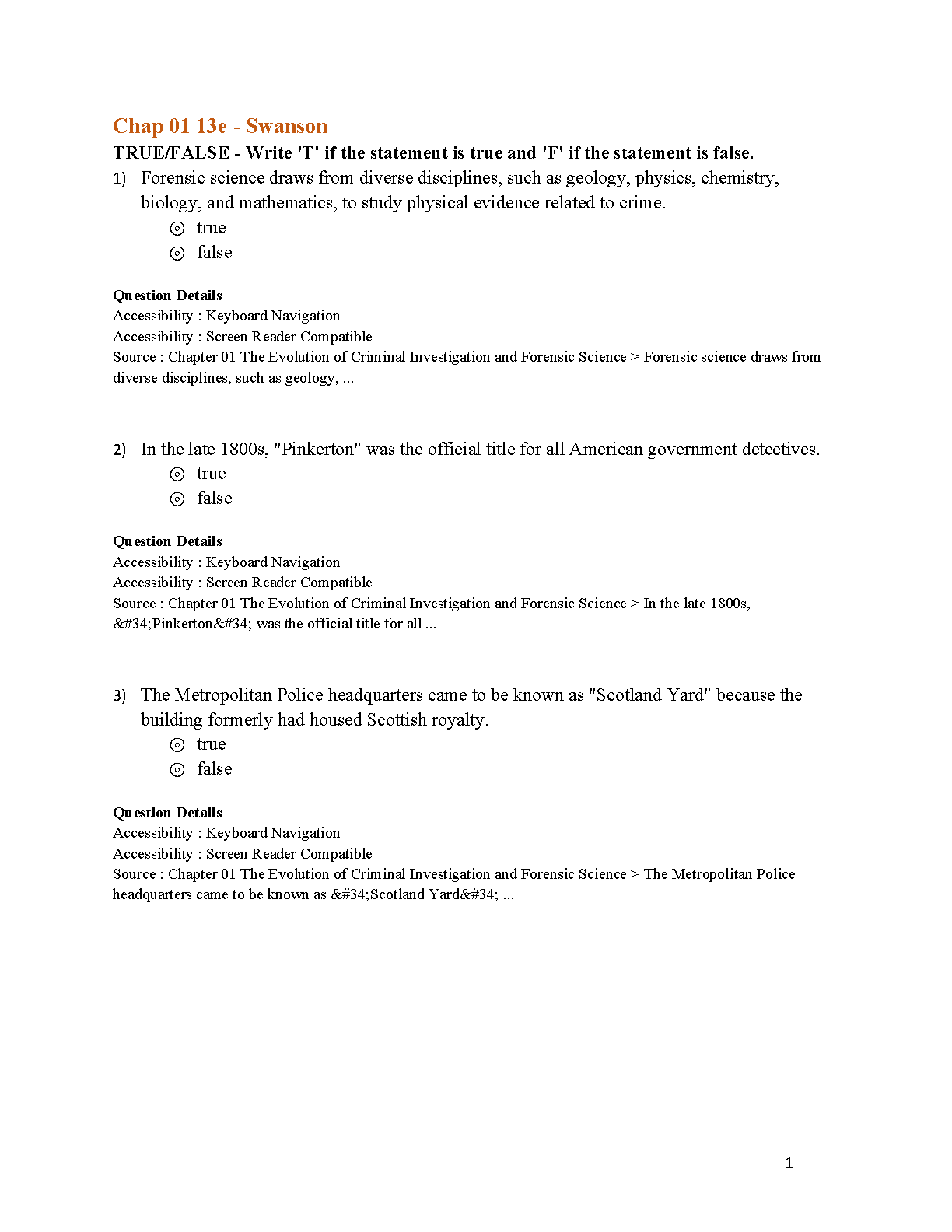 Test Bank for Criminal Investigation, 13th Edition by Charles R. Swanson, Neil C. Chamelin, Leonard Territo, Robert W. Taylor