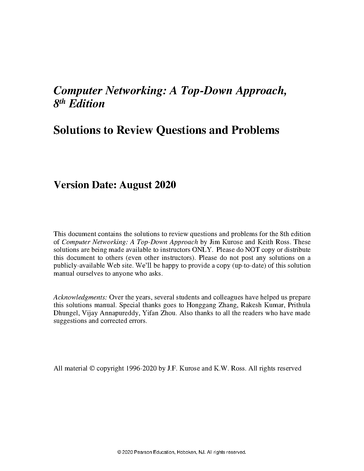 Solution Manual for Computer Networking: A Top-Down Approach, 8th Edition by James F. Kurose, Keith W. Ross