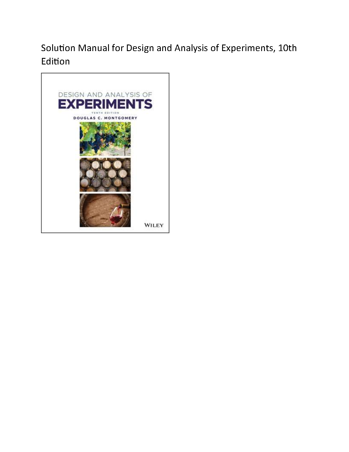 Solution Manual for Design and Analysis of Experiments, 10th Edition by Douglas C. Montgomery