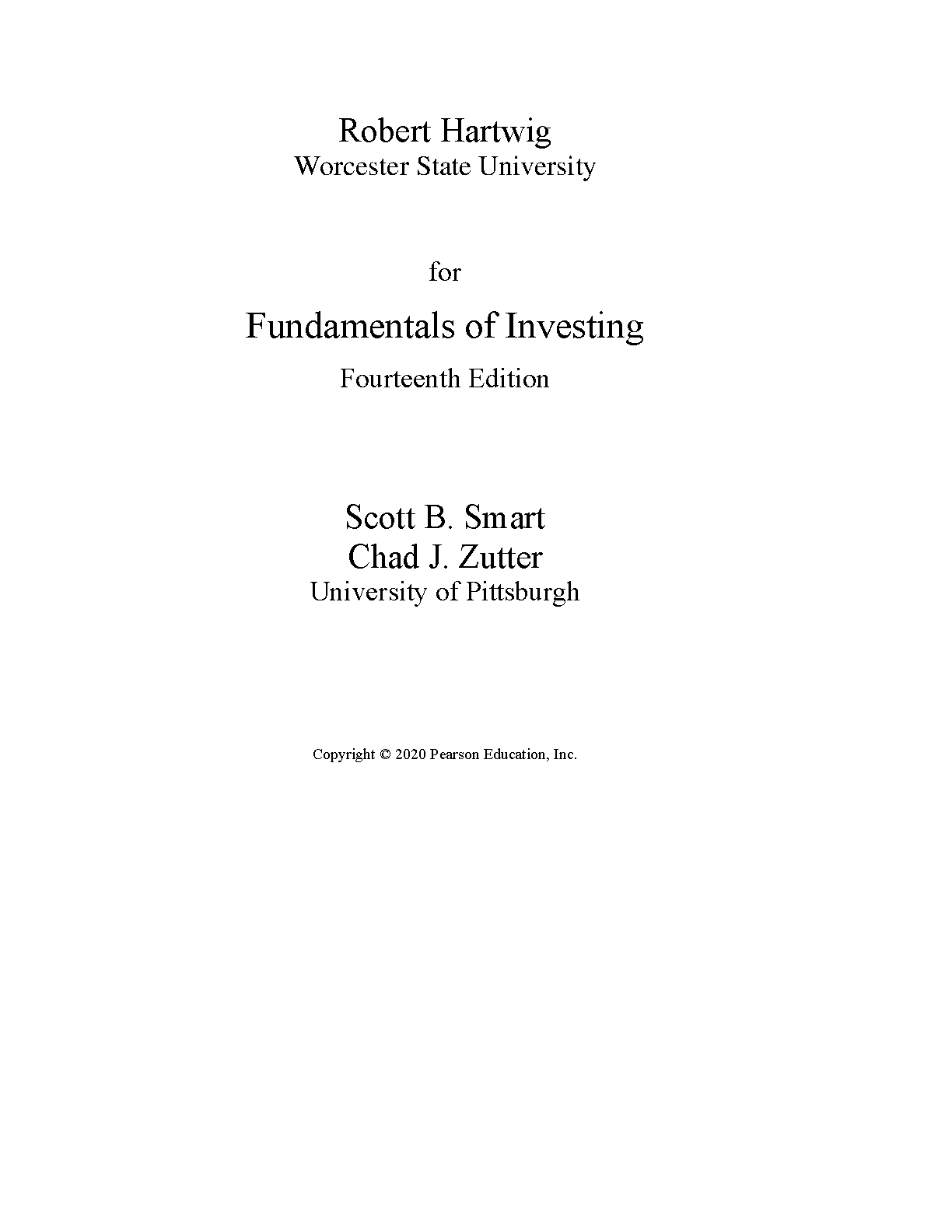 Test Bank for Fundamentals of Investing, 14th Edition by Scott B. Smart & Chad J. Zutter