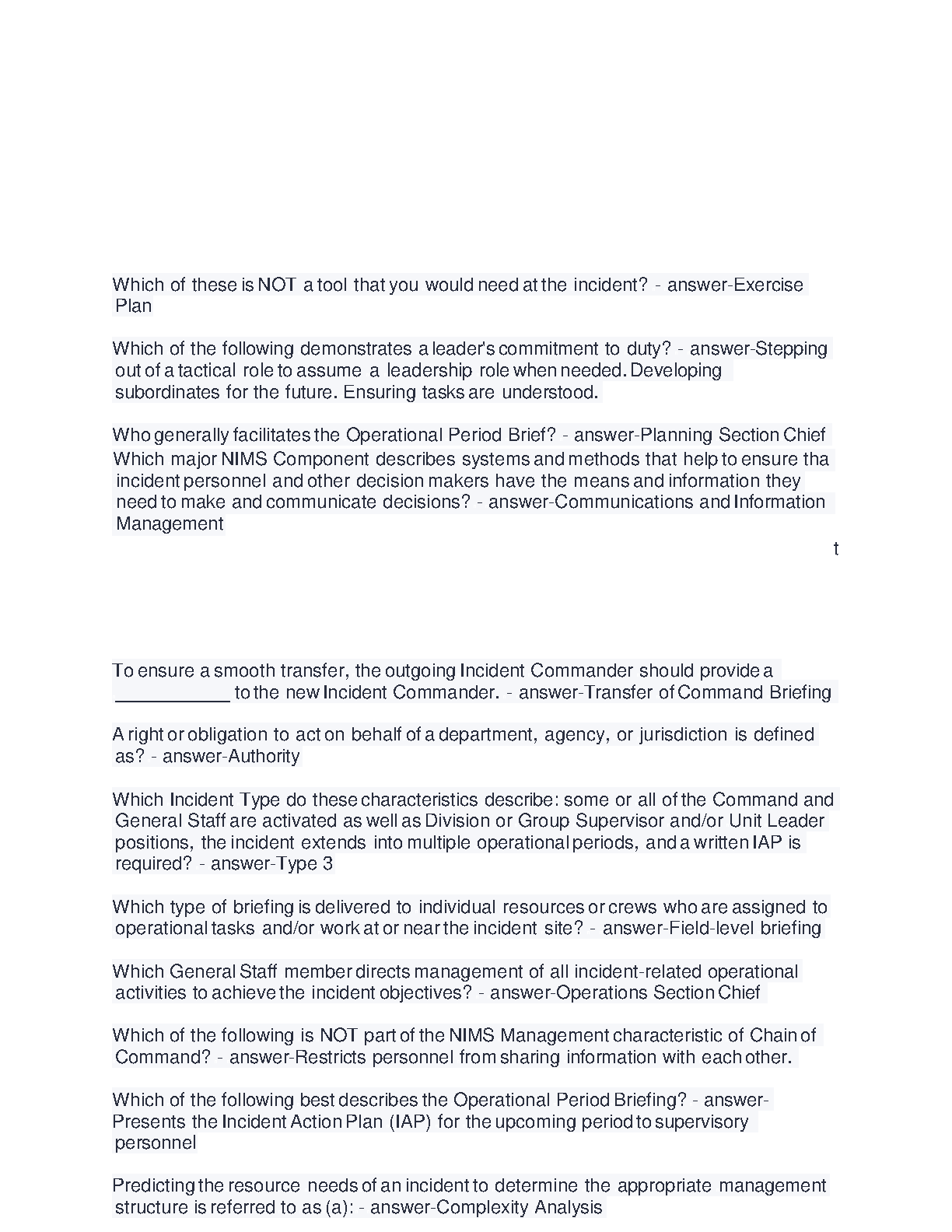 Ace your FEMA certification with our comprehensive test bank for ICS-200.c: Basic Incident Command System for Initial Response. This study guide features a complete collection of real exam questions with 100% correct, verified answers. Master key concepts of the Incident Command System, including leadership, management, delegation, and resource management. Our ICS 200 test bank is your ultimate tool to study effectively, boost your confidence, and pass the final exam on your first attempt. Download now and get certified faster!