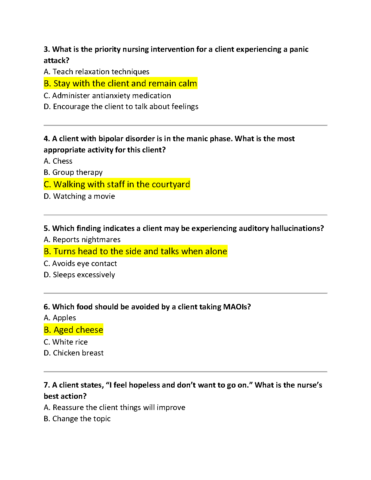 Master your HESI Mental Health exam with our comprehensive and up-to-date practice test for the 2025-2026 academic year. This premium study resource features a collection of actual exam questions, each paired with a verified, correct answer. The questions cover all critical topics in psychiatric and mental health nursing, mirroring the real HESI exam's structure and difficulty. Designed to help you pass on your first attempt and achieve an A-grade, this guide is your key to avoiding stressful resits. By familiarizing yourself with the types of questions asked, you can build confidence, identify areas for improvement, and walk into your exam fully prepared for success.