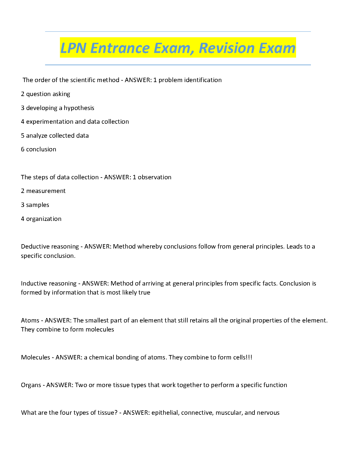 Unlock your nursing career potential with our comprehensive LPN Entrance Exam Revision Guide for the 2025/2026 academic year. This essential resource features a curated list of questions and verified answers covering fundamental scientific principles, including the scientific method, biological organization from atoms to organs, and critical reasoning skills. Designed for aspiring Licensed Practical Nurses, this study guide simplifies complex topics into an easy-to-digest Q&A format, helping you to build confidence and master the material needed to pass your exam on the very first attempt and avoid costly resits.