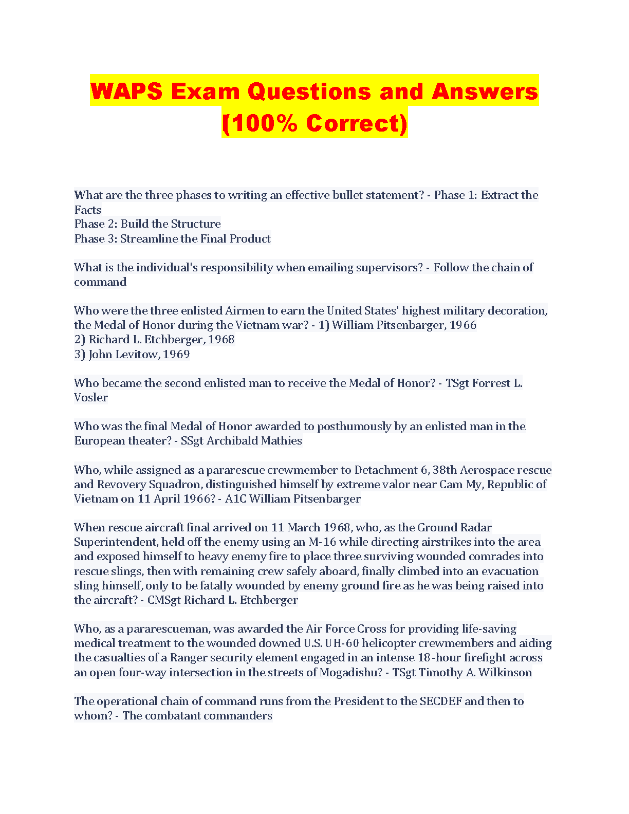 WAPS Exam Mastery Test Bank: 100% Correct Questions and Answers for USAF Promotion Success 2024/2025