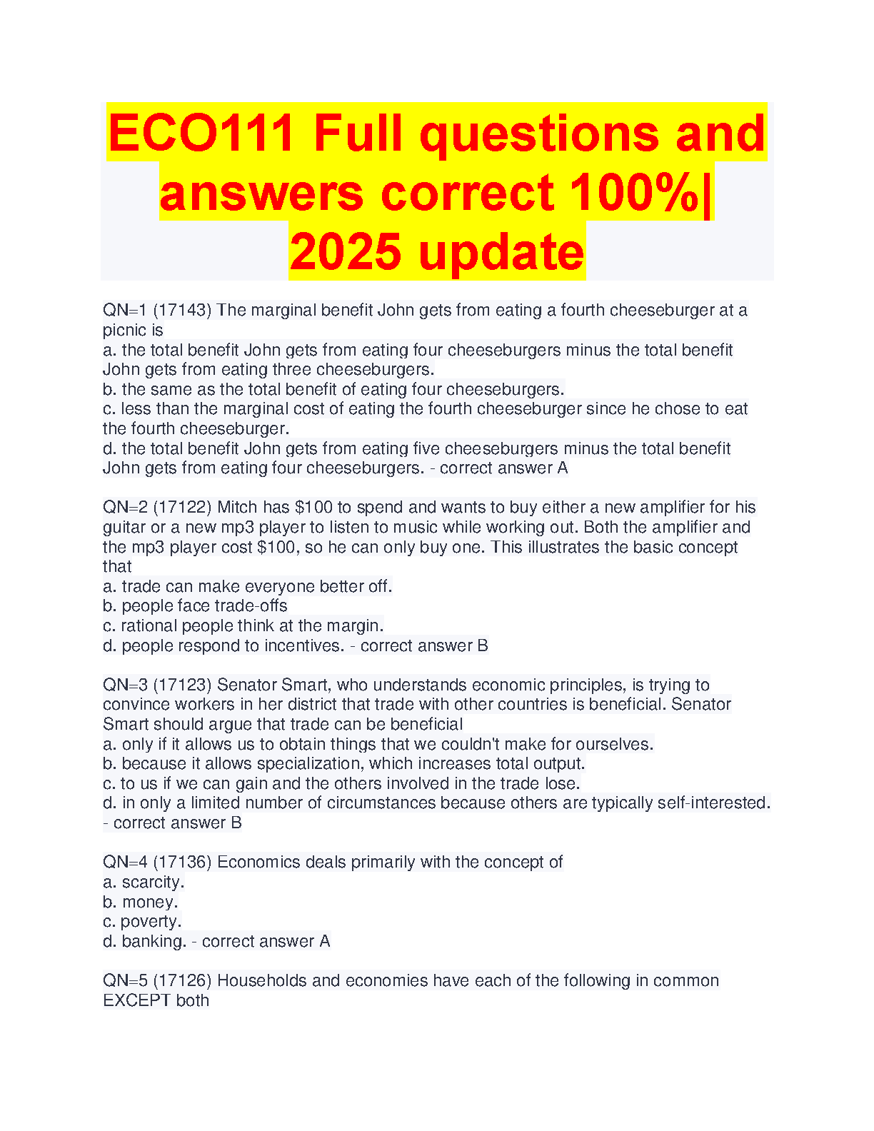Unlock academic success in your ECO111 course with the ultimate Test Bank for 'Principles of Economics,' 10th Edition by N. Gregory Mankiw. This comprehensive resource is your key to mastering every concept, from scarcity and trade-offs to market dynamics. Featuring an extensive collection of exam-style questions with 100% verified answers, this guide is meticulously updated for the 2025/2026 academic year. Prepare efficiently for midterms and finals, build confidence, and secure top grades. Download now and pass your economics exam on the first try!