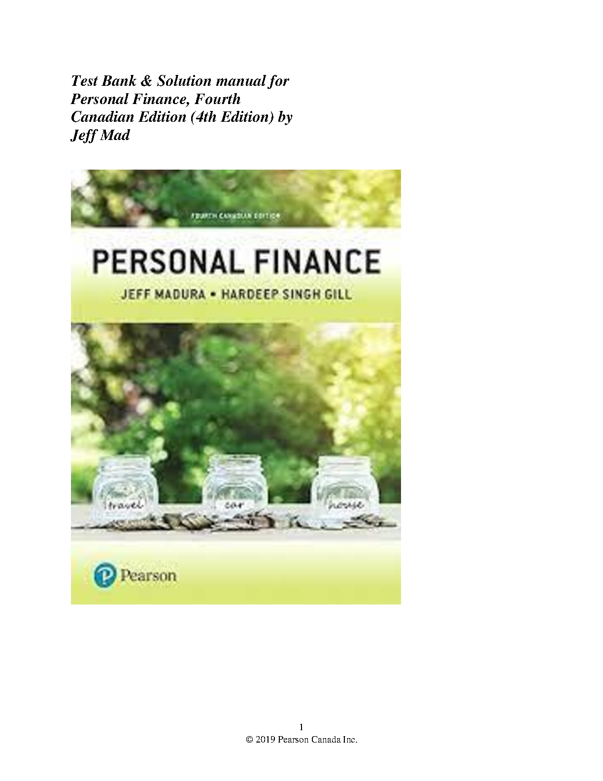 Test Bank and Solution Manual for Personal Finance, Fourth Canadian Edition by Jeff Madura and Hardeep Singh Gill