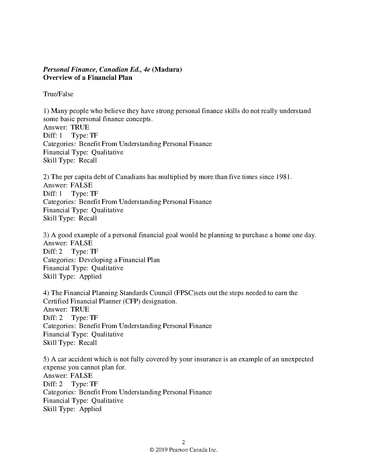 Unlock your full potential in your personal finance course with the complete Test Bank and Solution Manual for 'Personal Finance, Fourth Canadian Edition' by Jeff Madura and Hardeep Singh Gill. This essential study guide is your key to mastering complex financial topics. The test bank is packed with a vast array of exam-style questions, helping you anticipate what to expect on test day. The solution manual provides clear, comprehensive, and step-by-step solutions to textbook exercises, helping you grasp difficult concepts and improve your problem-solving skills. Download now to start studying smarter, boost your confidence, and secure the top grade you deserve.