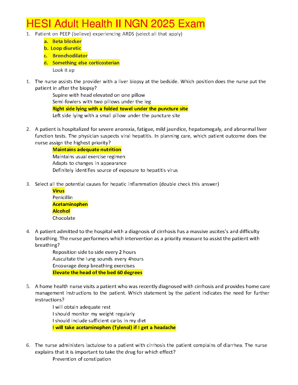 HESI Adult Health II NGN 2025 Exam Test Bank: Ace Your Test with the Latest Questions and Answers for 2025/2026