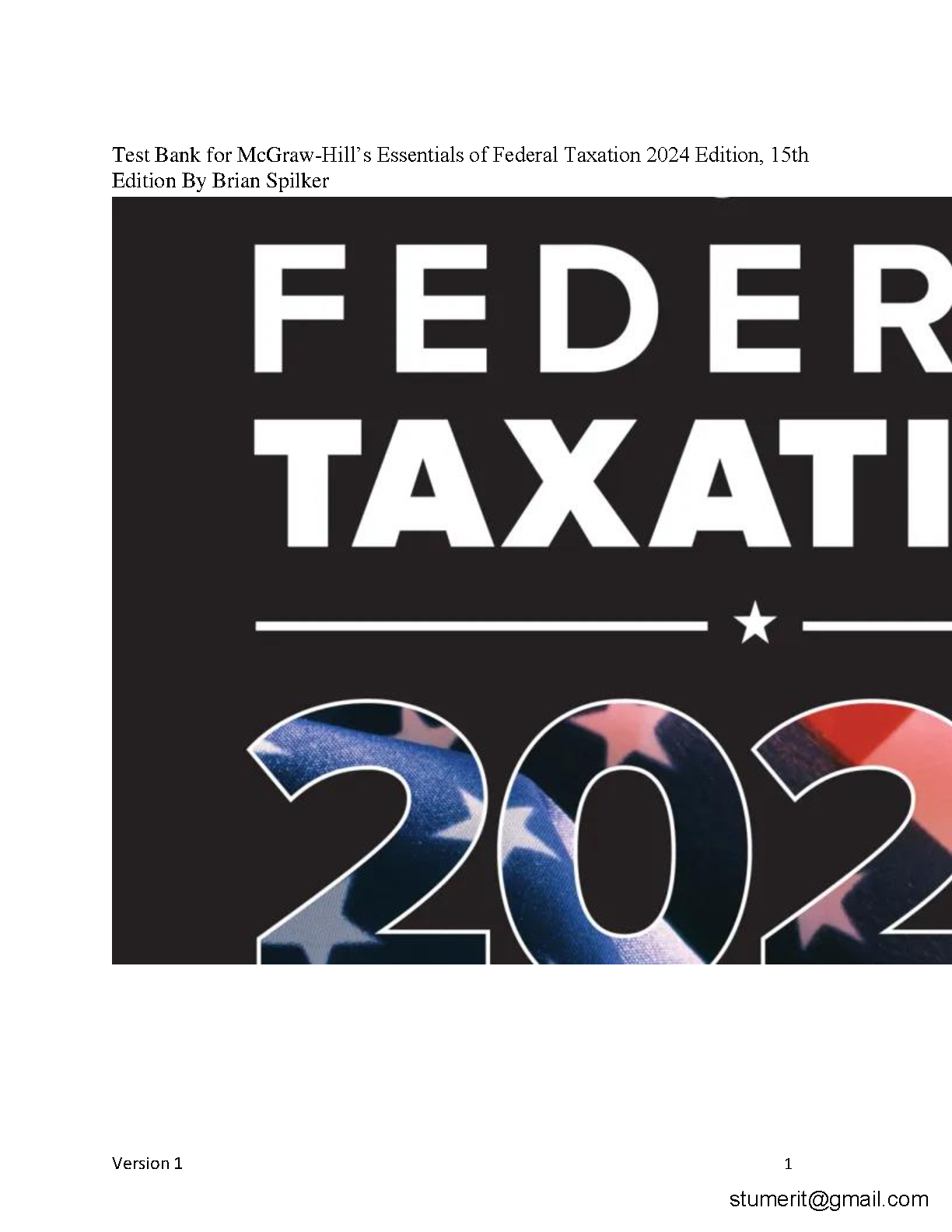 Test Bank for McGraw-Hill's Essentials of Federal Taxation 2024, 15th Edition by Brian Spilker, Benjamin Ayers, John Robinson, Edmund Outslay, Ronald Worsham, John Barrick, Connie Weaver