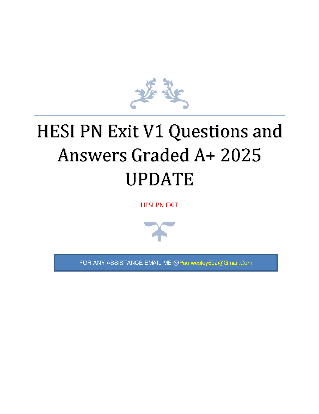 HESI PN Exit V1 Test Bank 2025/2026 | Latest Questions & A+ Answers to Pass on First Try