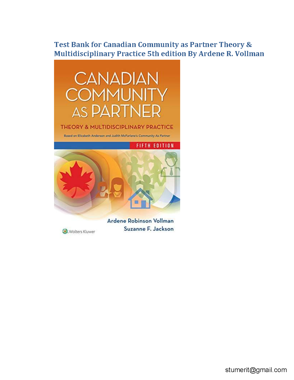 Test Bank for Canadian Community as Partner: Theory & Multidisciplinary Practice, 5th Edition by Ardene Robinson Vollman & Suzanne F. Jackson