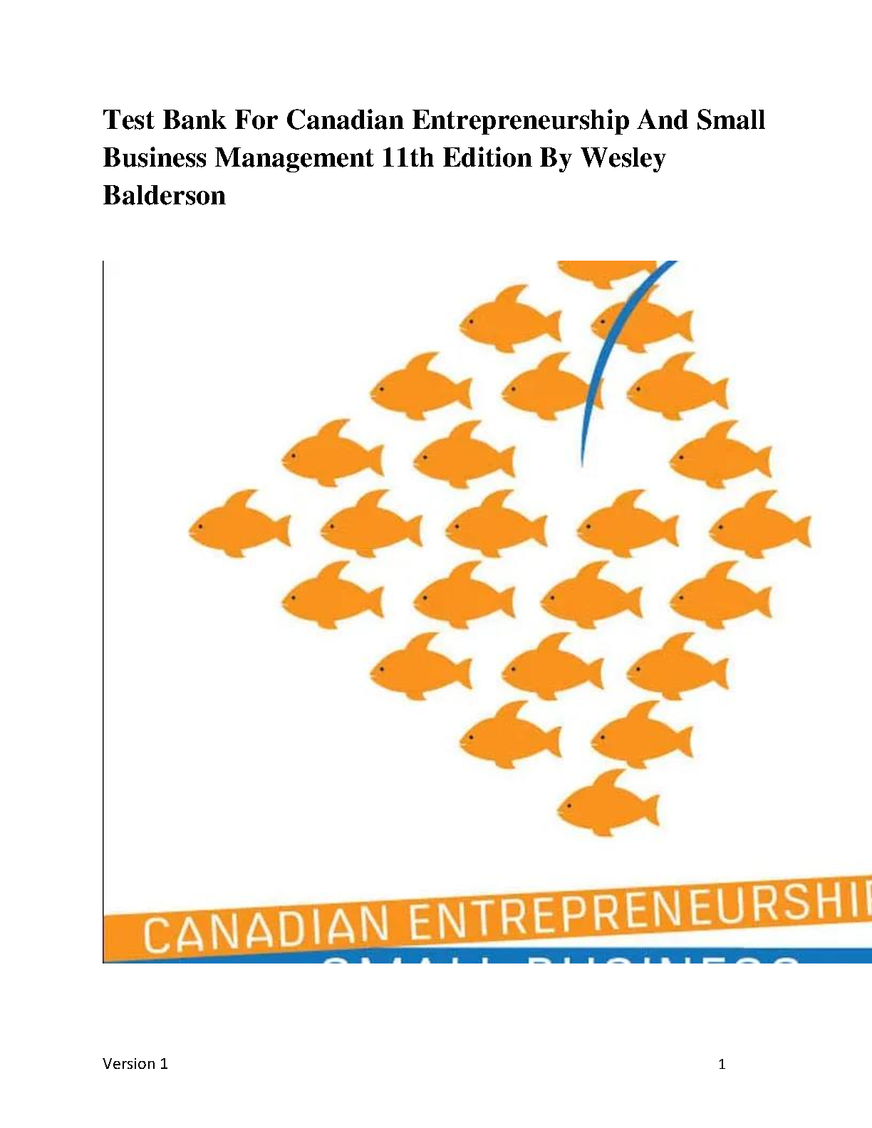 Test Bank for Canadian Entrepreneurship and Small Business Management, 11th Edition by D. Wesley Balderson