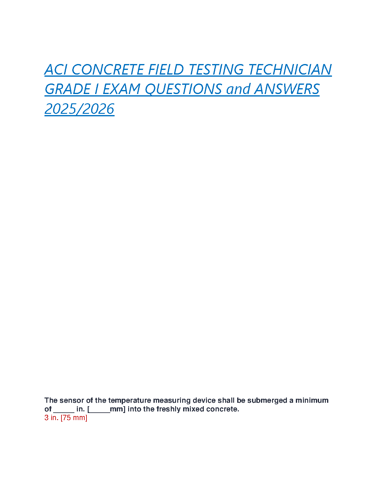 ACI Concrete Field Testing Technician Grade I Certification Exam Test Bank (2025/2026 Edition) by American Concrete Institute