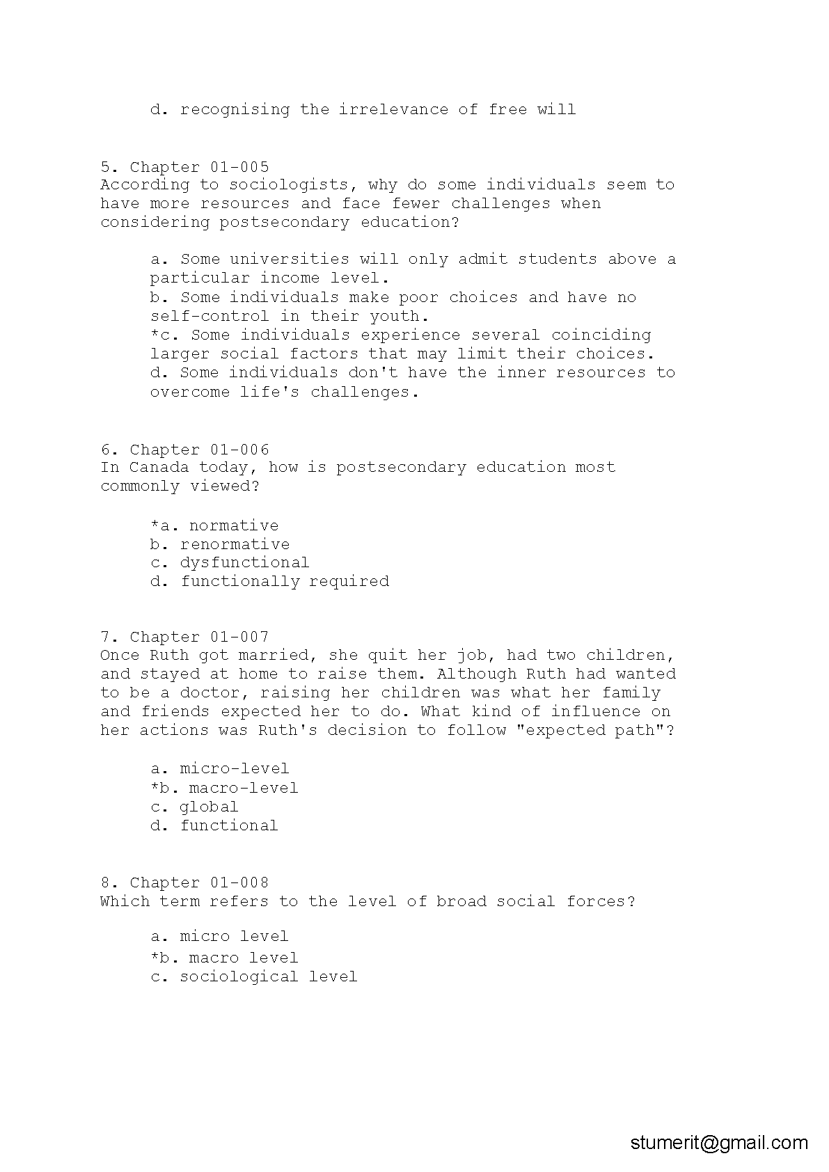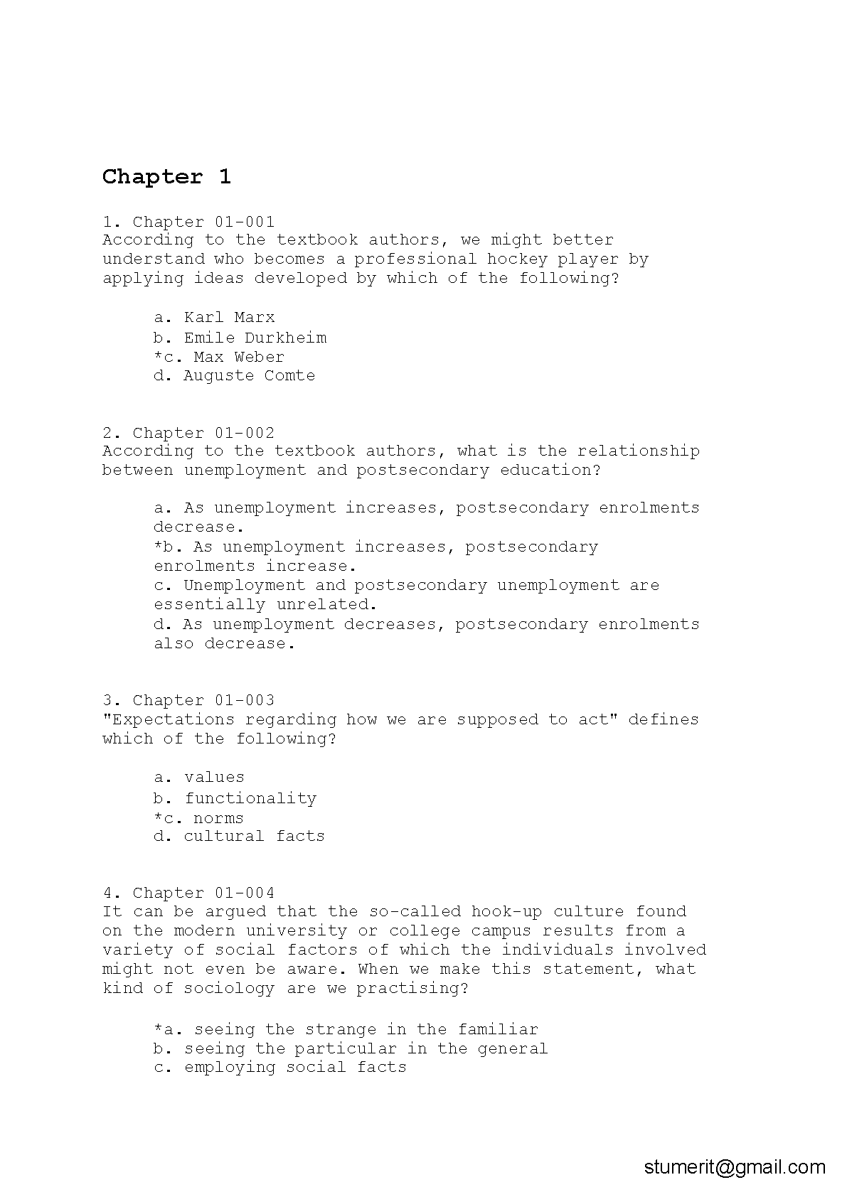 Test Bank for Sociology in Action: A Canadian Perspective, 4th Edition by Tami M. Bereska, Diane G. Symbaluk