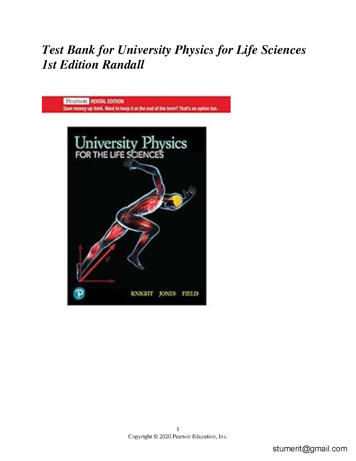 Test Bank for University Physics for Life Sciences, 1st Edition by Randall D. Knight, Brian Jones, and Stuart Field