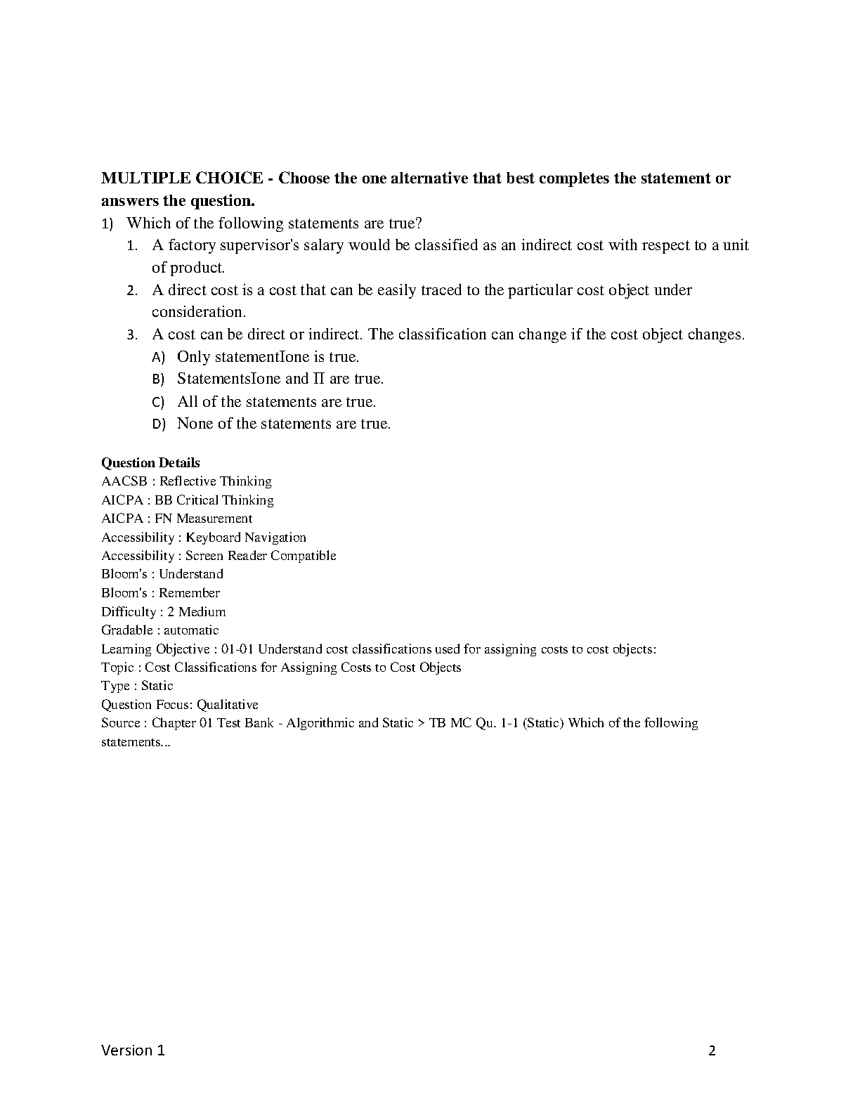 Official Test Bank for Managerial Accounting, 18th Edition by Ray H. Garrison, Eric W. Noreen, Peter C. Brewer