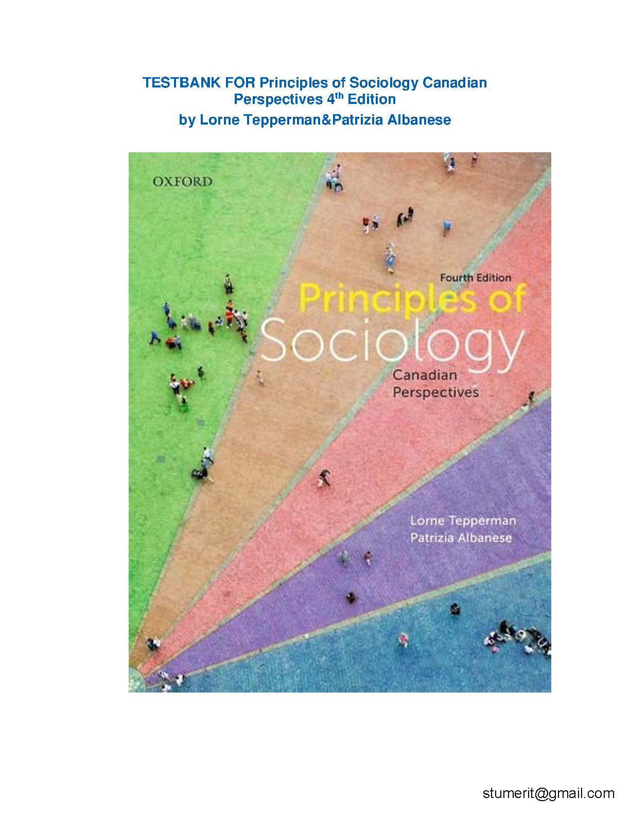 Test Bank for Principles of Sociology: Canadian Perspectives, 4th Edition by Lorne Tepperman & Patrizia Albanese