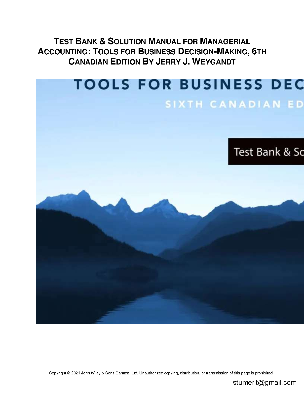 Official Test Bank and Solution Manual for Managerial Accounting: Tools for Business Decision-Making, 6th Canadian Edition by Jerry J. Weygandt, Paul D. Kimmel, Donald E. Kieso, Alyson A. K. A. Theiss