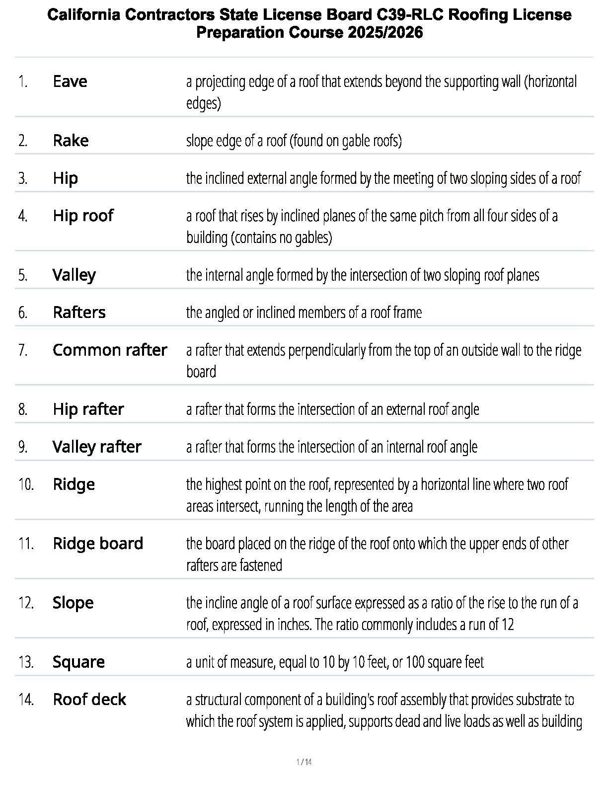 Ace your California C39-RLC Roofing Contractor License exam with our comprehensive preparation course, fully updated for the 2025/2026 academic year. This detailed study guide covers all essential topics, key terminologies, and critical concepts you need to know. Designed to be the ultimate resource for aspiring roofing contractors, our material simplifies complex information, ensuring you grasp the knowledge required to pass the CSLB exam confidently on your first attempt. Stop worrying about resits and start your successful career with the best preparation tool available.