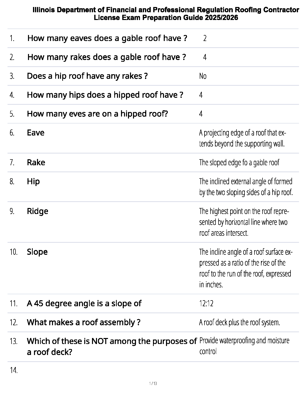 Get ready to ace your Illinois Roofing Contractor License Exam with our comprehensive preparation guide, fully updated for the 2025/2026 academic year. This study resource is expertly crafted to help you pass on your very first attempt, saving you time and money on resits. Inside, you'll find a detailed collection of exam-style questions and verified answers, covering all essential topics from gable and hip roof components to crucial definitions of terms like eaves, rakes, ridges, and slope. Our clear, concise format makes complex concepts easy to understand, ensuring you walk into the test with confidence. Don't leave your certification to chance—master the material with the latest and most effective study guide available.