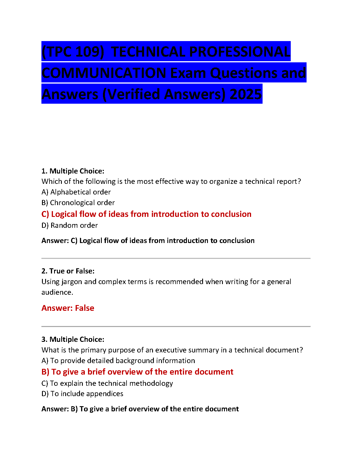 TPC 109 Technical Professional Communication Test Bank 2025: Exam Questions and Verified Answers