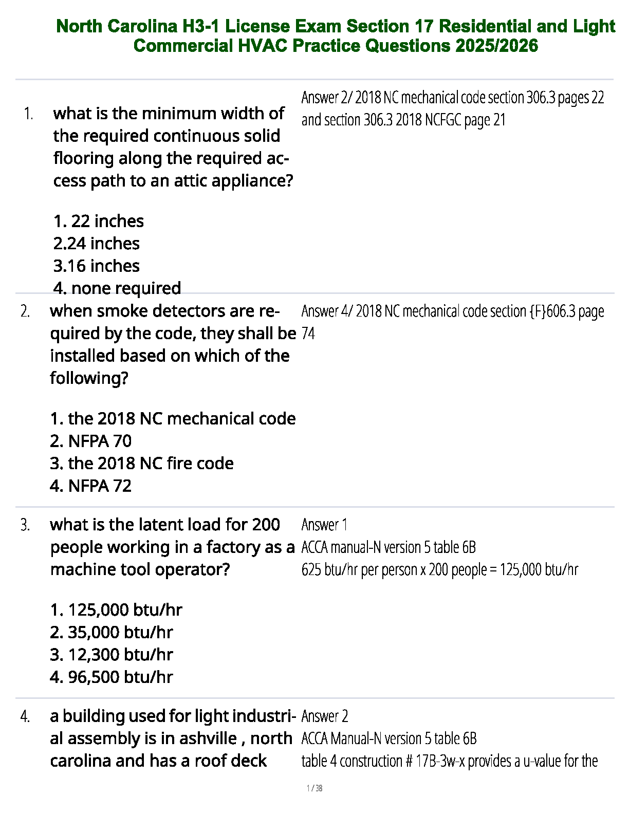 Get ready to ace your North Carolina H3-1 License Exam with our comprehensive test bank for Section 17, focusing on Residential and Light Commercial HVAC. This latest 2025/2026 edition features a complete set of practice questions with verified answers and detailed explanations, referencing key sources like the 2018 NC mechanical code and ACCA Manual-N. Master the material, build your confidence, and pass your HVAC certification exam on the first attempt. This is the ultimate study guide to avoid resits and launch your career.