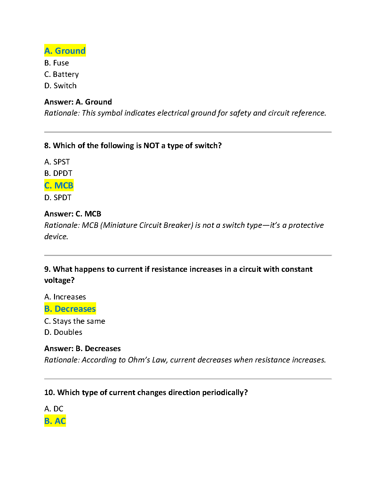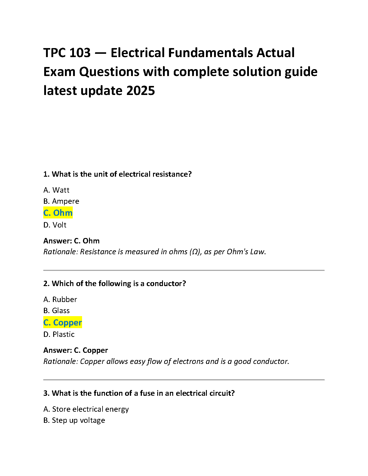 TPC 103 Electrical Fundamentals Exam 2025 - Verified Test Bank with Questions, Answers, and Rationales