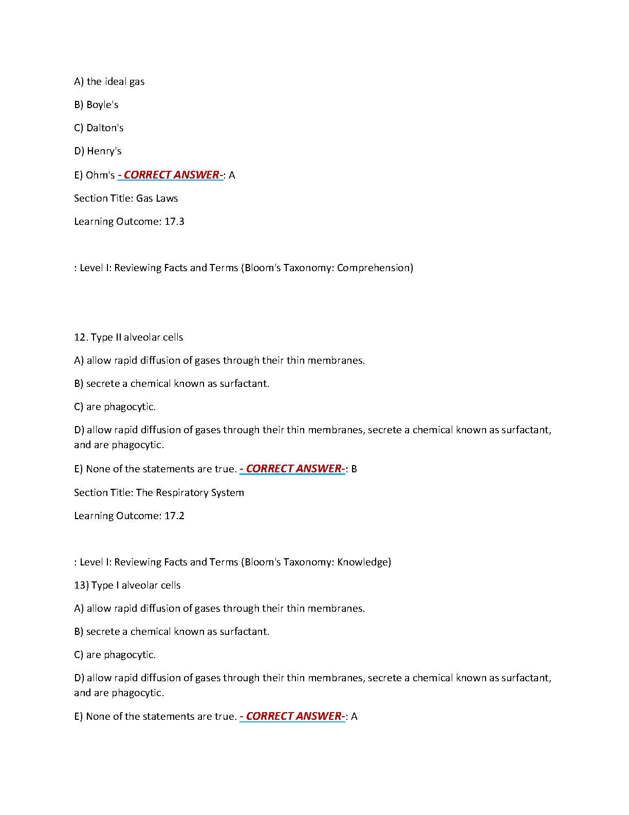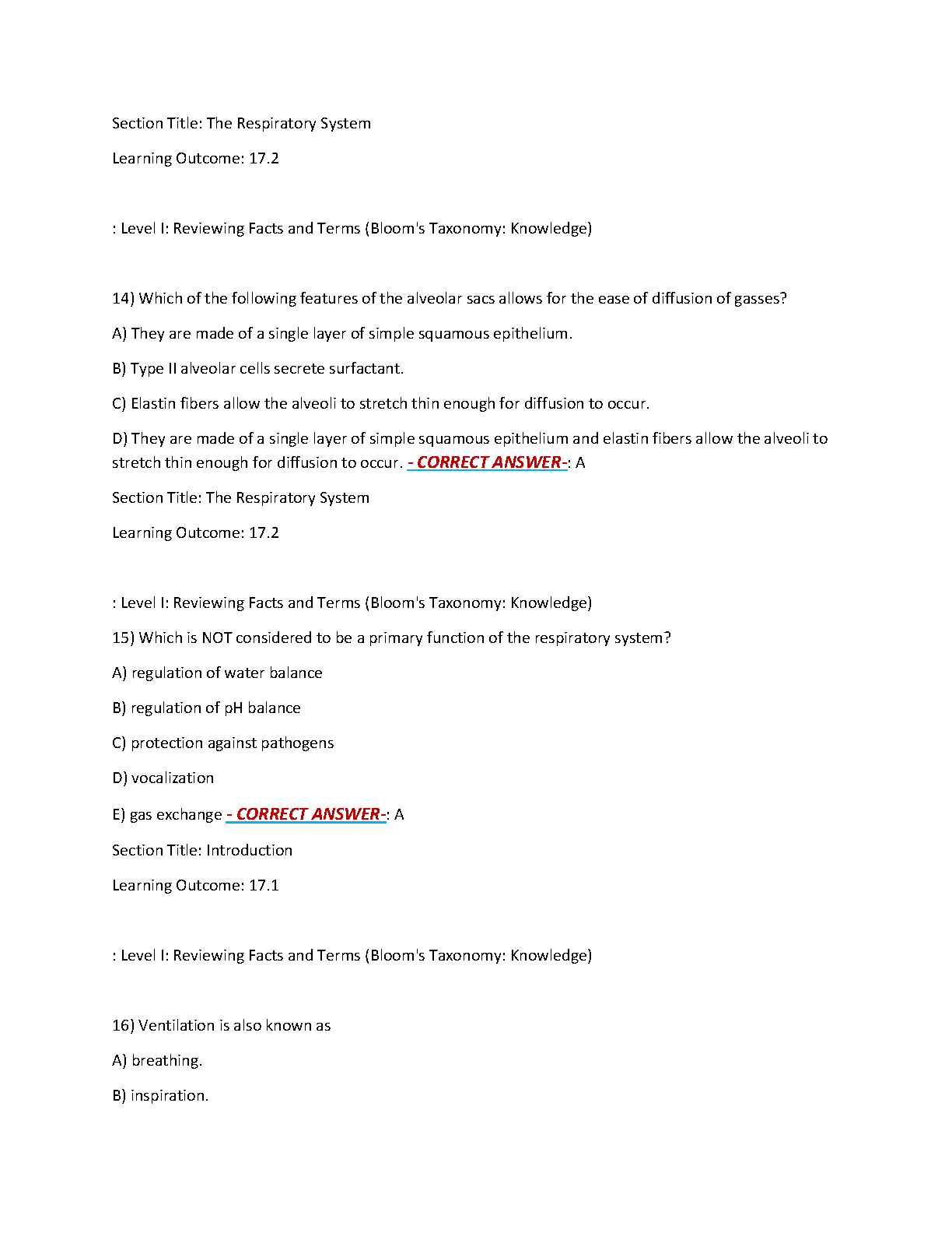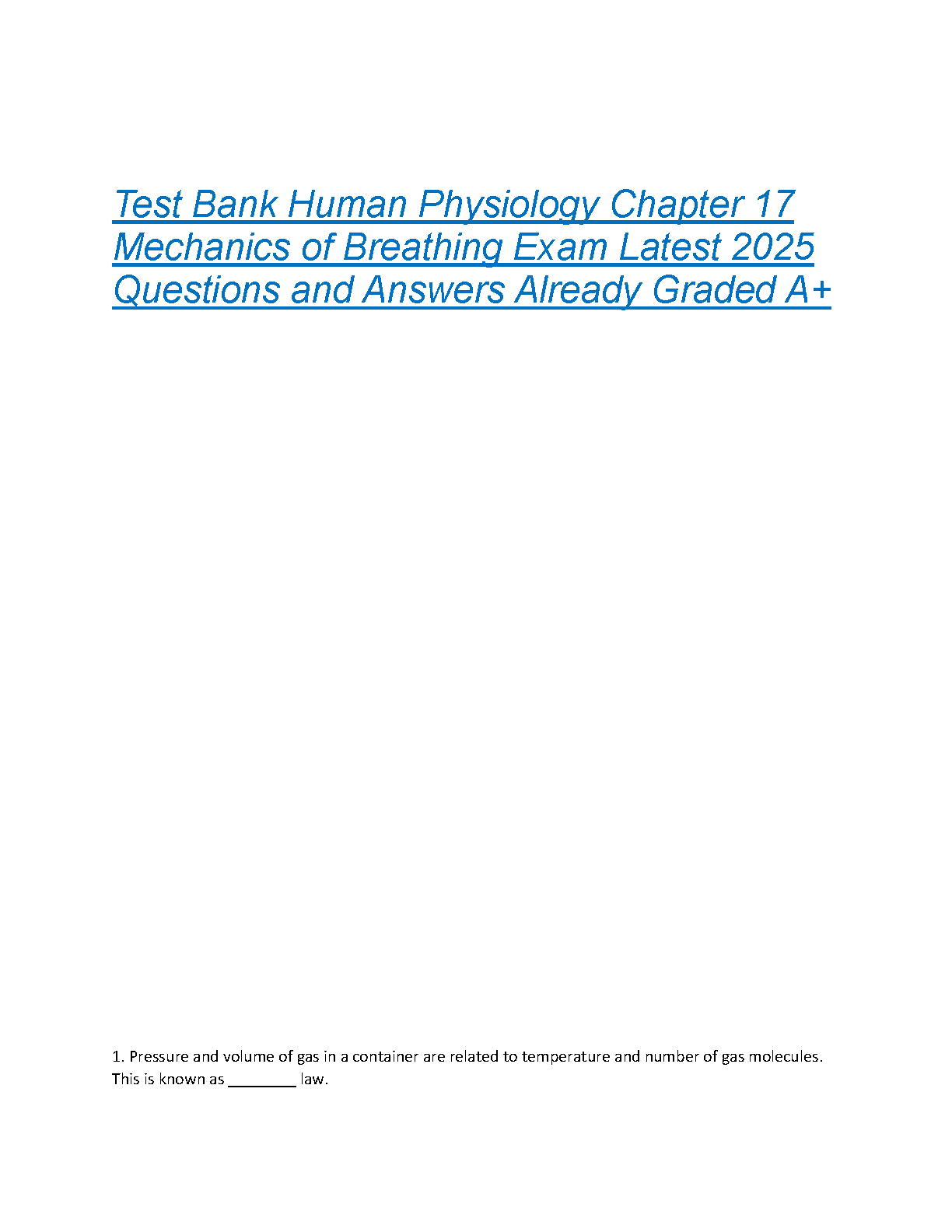 Test Bank for Human Physiology: An Integrated Approach, 9th Edition by Dee Unglaub Silverthorn - Chapter 17 Mechanics of Breathing | Latest 2025/2026 Questions & A+ Graded Answers