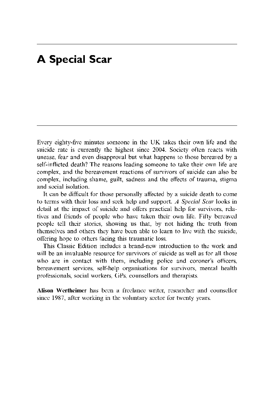 Unlock a profound understanding of suicide bereavement with 'A Special Scar' by Alison Wertheimer. This Classic Edition is an essential resource for the 2025/2026 academic year, offering invaluable insights into the unique experiences of those left behind. Based on powerful, in-depth interviews, this guide provides the foundational knowledge needed to excel in your mental health, psychology, or counseling exams. Ensure you pass on your first attempt by mastering the critical concepts and real-world perspectives presented in this definitive text on navigating grief after suicide.