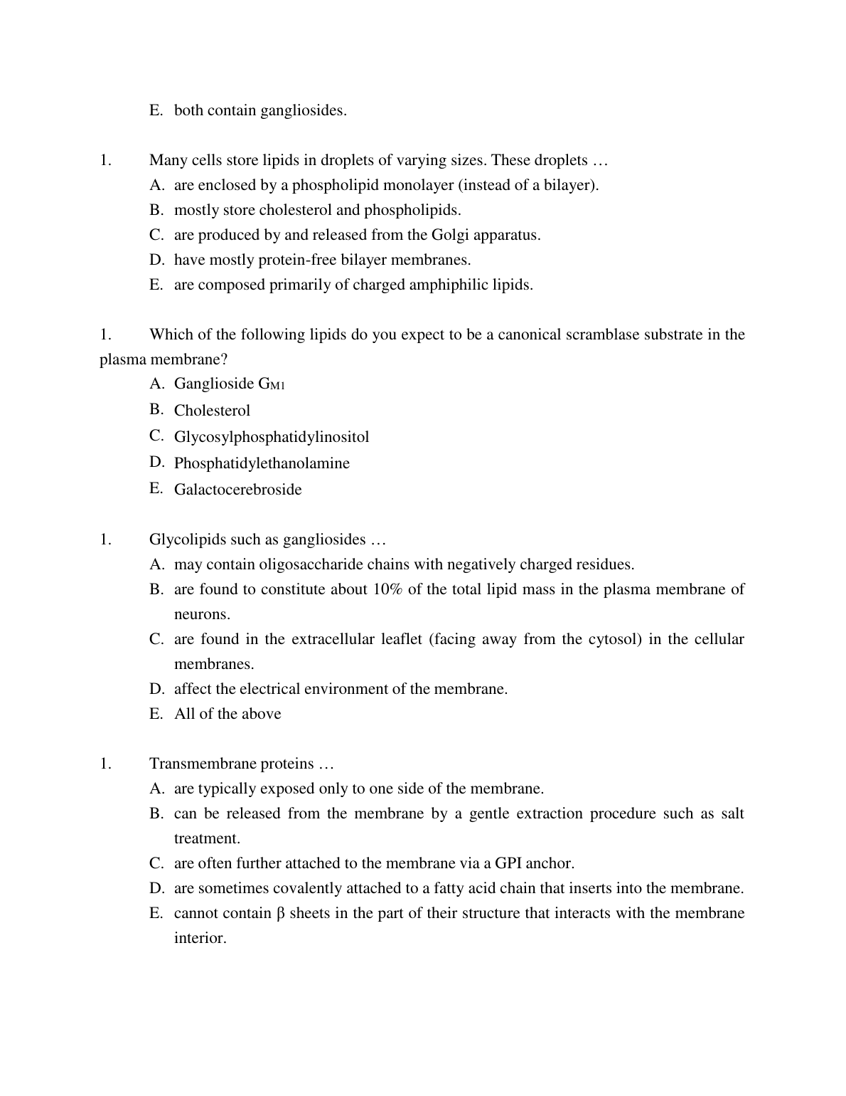 TEST BANK FOR MOLECULAR BIOLOGY OF THE CELL, SIXTH EDITION BY BRUCE ALBERTS (CHAPTER 10 MEMBRANE STRUCTURE)