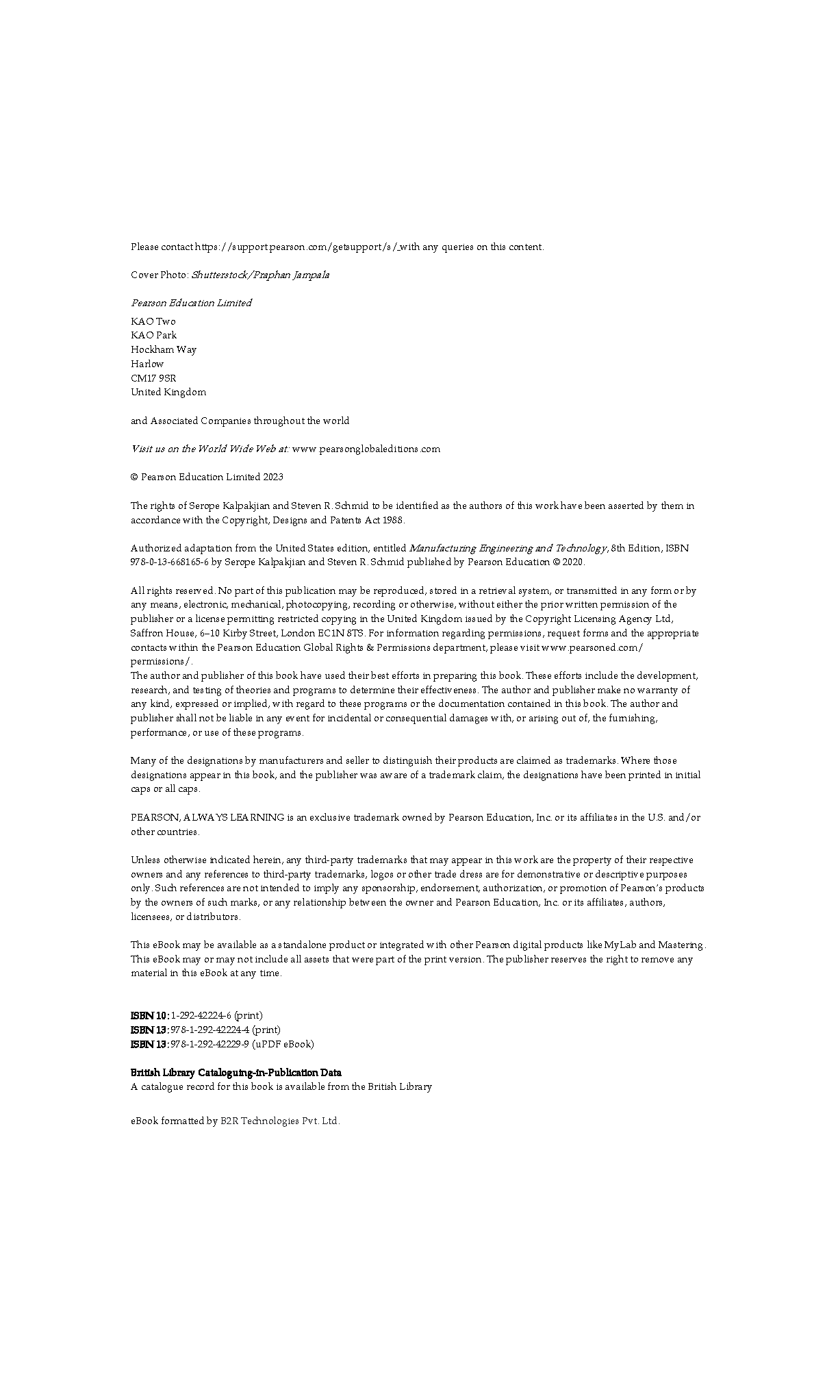 Master your manufacturing engineering course and ace your exams with this comprehensive Test Bank for 'Manufacturing Engineering and Technology, Eighth Global Edition in SI Units' by Kalpakjian and Schmid. This essential study resource provides a vast array of questions covering all key topics from the textbook, designed to rigorously test your understanding and prepare you for any exam challenge. Gain the confidence you need to pass on your first attempt and avoid resits. Download now and start your journey to academic success in the 2025/2026 academic year.