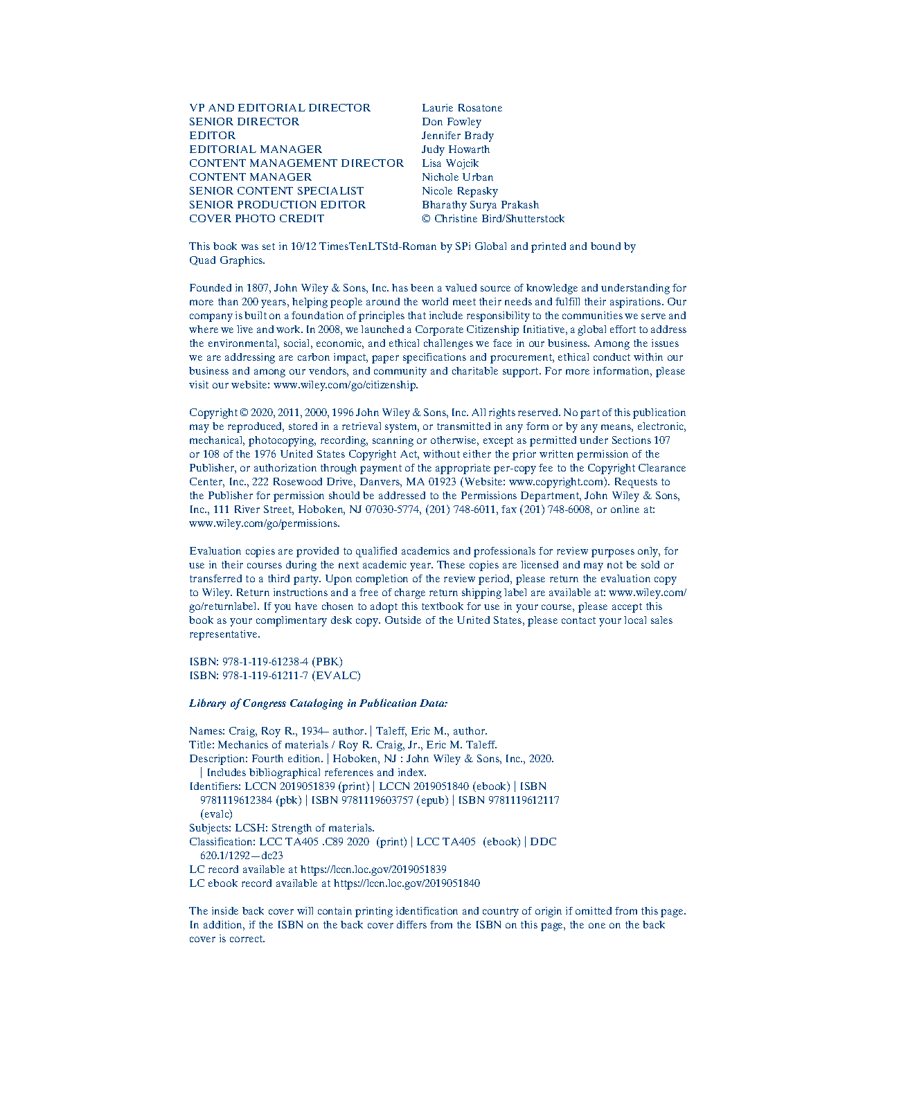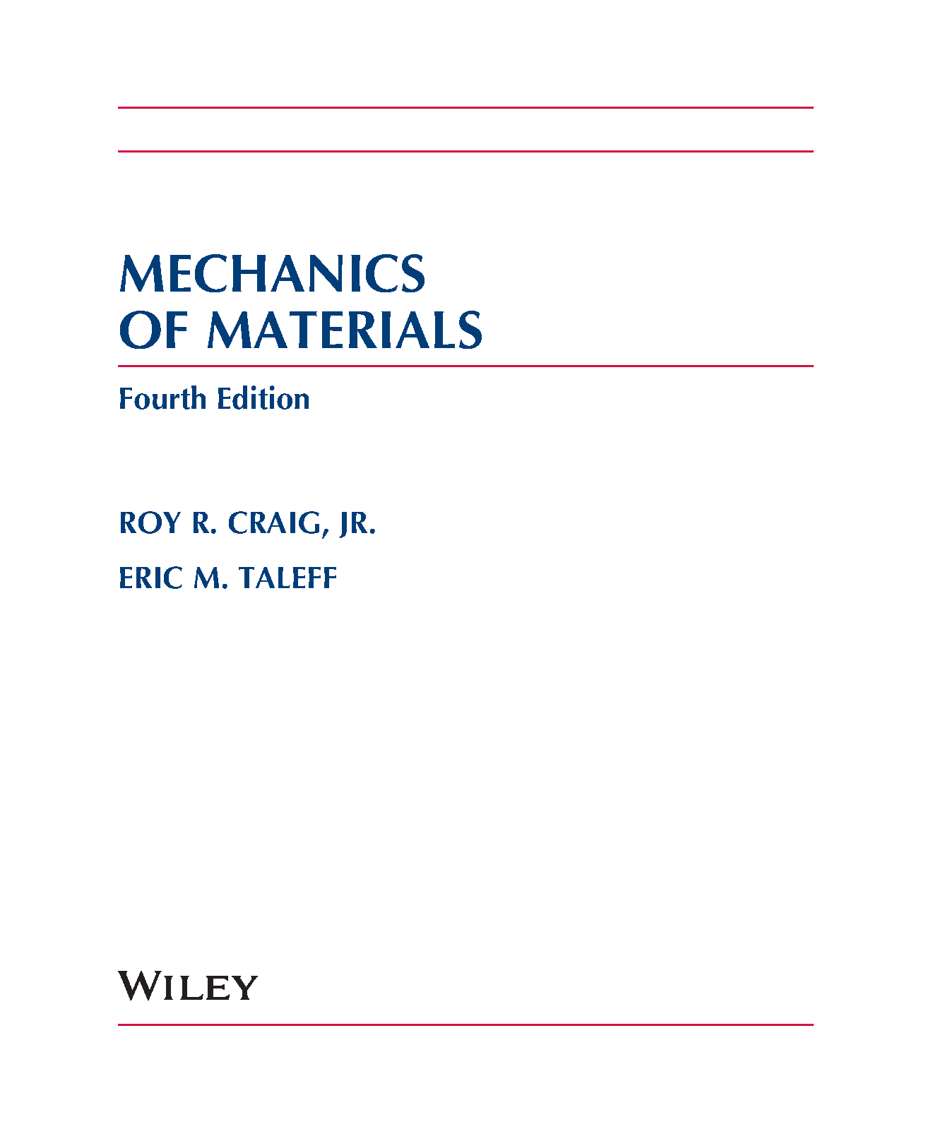 Test Bank for Mechanics of Materials, 4th Edition by Roy R. Craig, Jr. and Eric M. Taleff