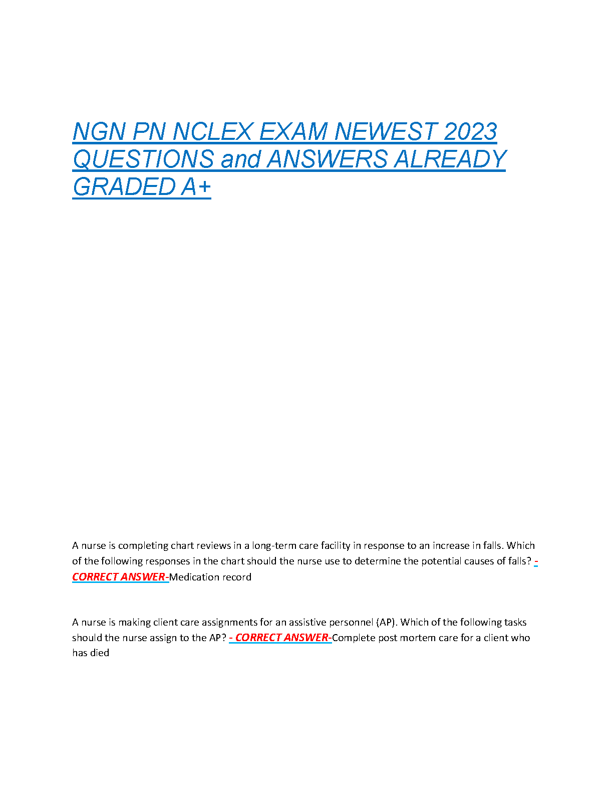 NGN PN NCLEX Test Bank 2024-2025: A+ Graded Questions and Verified Answers for Exam Success