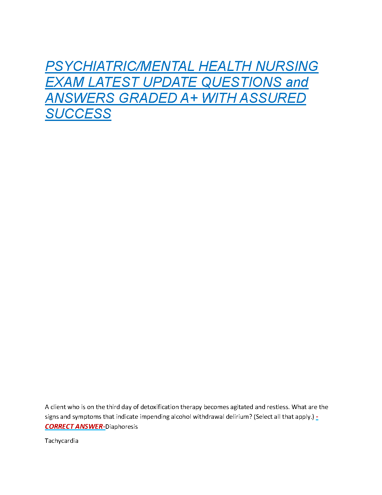 HackedExams is the website to download all resources for students who want to pass their exams on their first attempt. Our website offers all exam materials, including practice questions with answers, test banks, study guides, notes, summaries, and more for nursing, computer science, biology, psychology, law, and others. With resources from popular exam bodies like ATI, AQA, OCR, Edexcel, Comptia, Azure, and more, you'll easily find everything you need to get certified. Avoid resitting exams; trust in HackedExams.com to give you the resources to pass on your first attempt. Get access to exams from 2019 to 2023 and start your path to success today. "Avoid resits, get certified within days, and pass your exams on your first attempt."