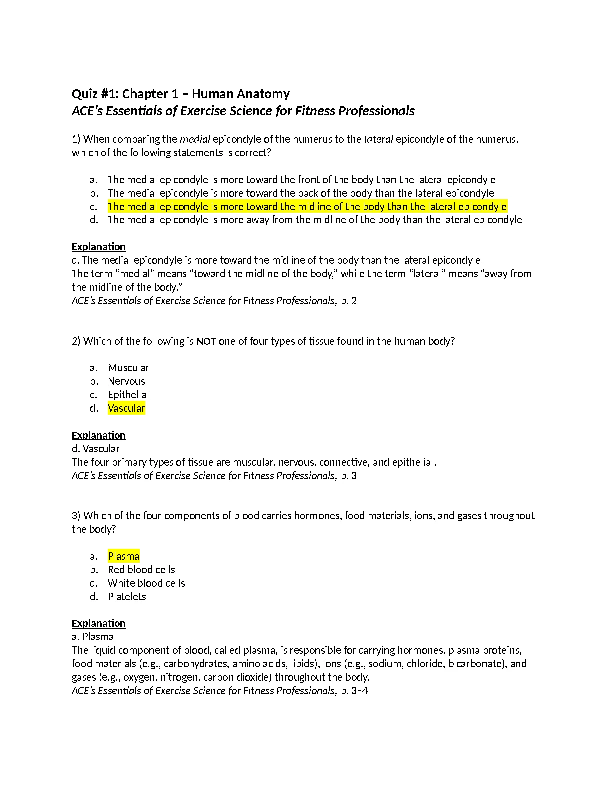 TEST BANK FOR ACE’s Essentials of Exercise Science for Fitness Professionals 2023/2024