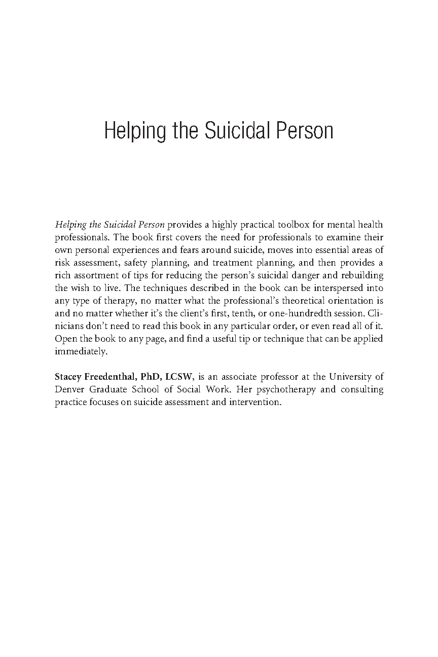 Helping the Suicidal Person: Tips and Techniques for Professionals, 1st Edition by Stacey Freedenthal - 2025/2026 Study Guide to Ace Your Exams