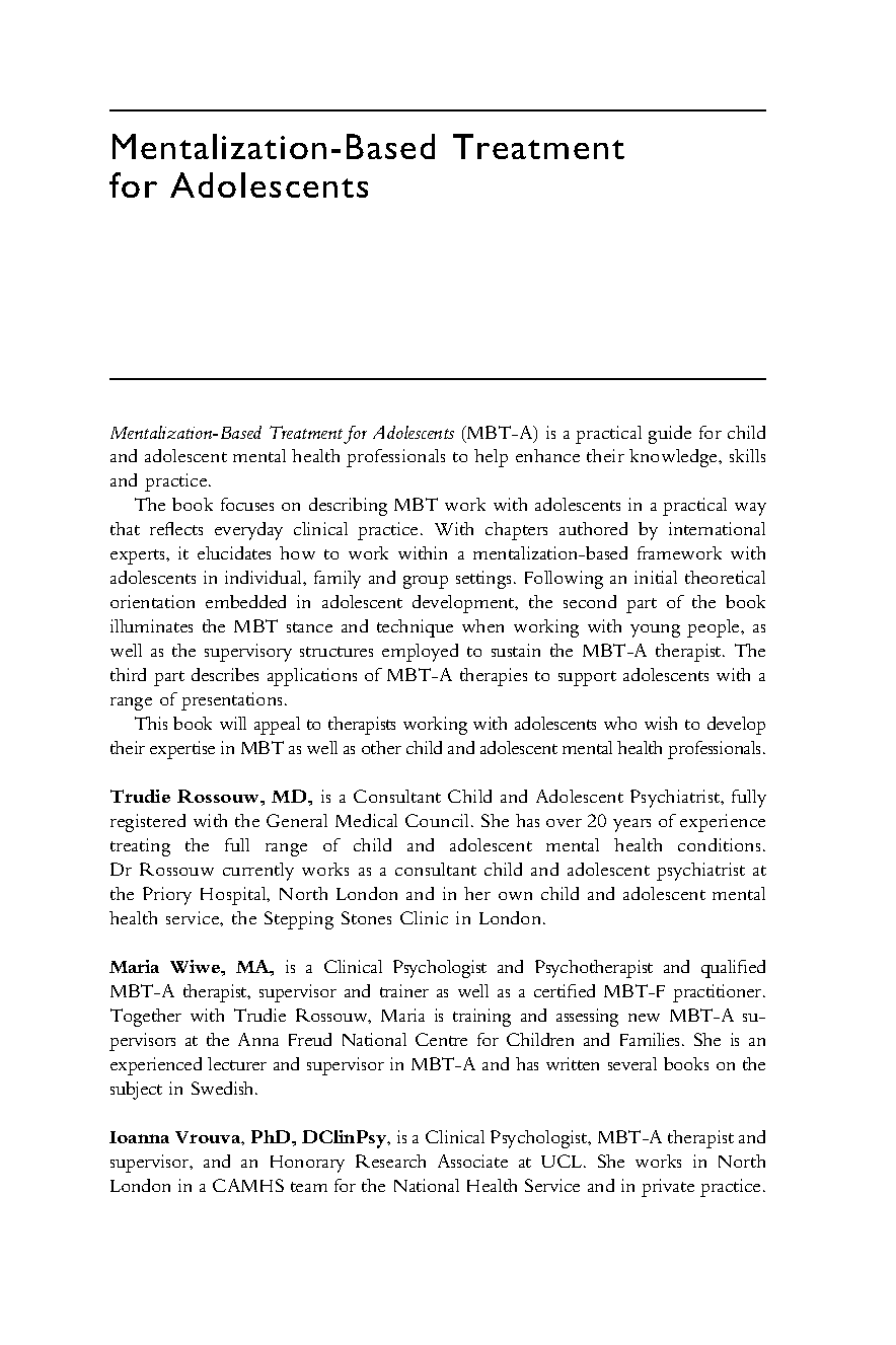 Mentalization-Based Treatment for Adolescents: A Practical Guide, 1st Edition by Trudie Rossouw, Maria Wiwe, & Ioanna Vrouva | 2025/2026 Edition to Master Adolescent Therapy and Pass Your Exams