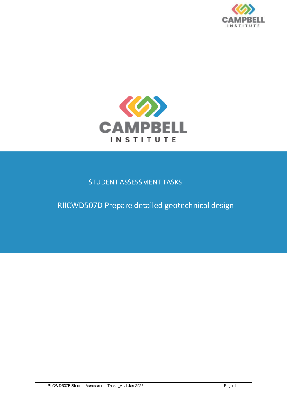 RIICWD507D Prepare Detailed Geotechnical Design - Latest 2025/2026 Student Assessment Tasks & Exam Elaboration