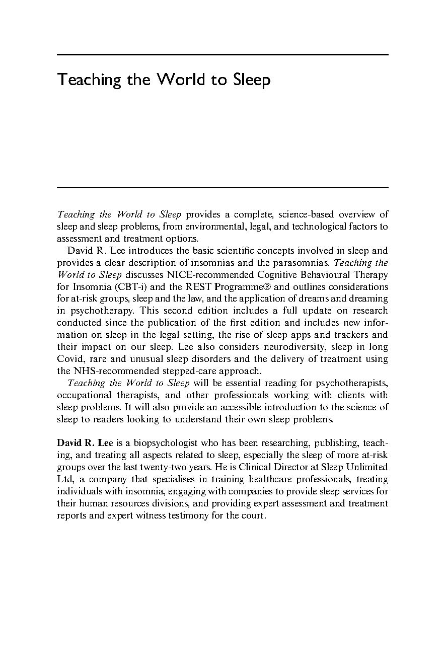Unlock the secrets to overcoming sleep disorders with the second edition of 'Teaching the World to Sleep'. This comprehensive guide by David R. Lee provides essential psychological and behavioral strategies for assessing and treating insomnia. Fully updated for the 2025/2026 academic year, this resource is expertly designed to help students and clinicians master the core concepts of sleep therapy. Ensure you can confidently apply evidence-based techniques and pass your exams on the first attempt, avoiding costly resits.