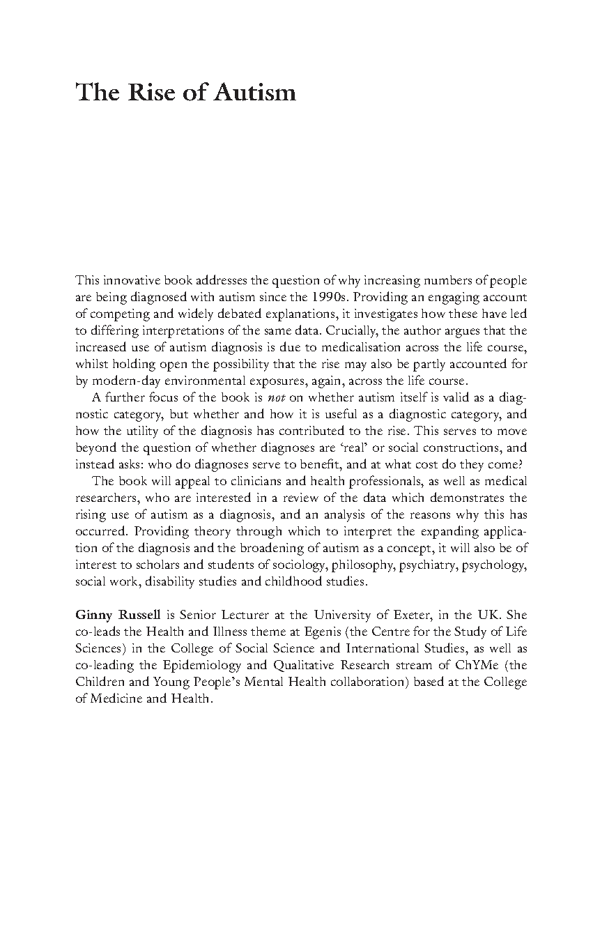 The Rise of Autism: Risk and Resistance in the Age of Diagnosis (1st Edition) by Ginny Russell - Essential 2025/2026 Reading to Ace Sociology of Health Exams & Avoid Resits.