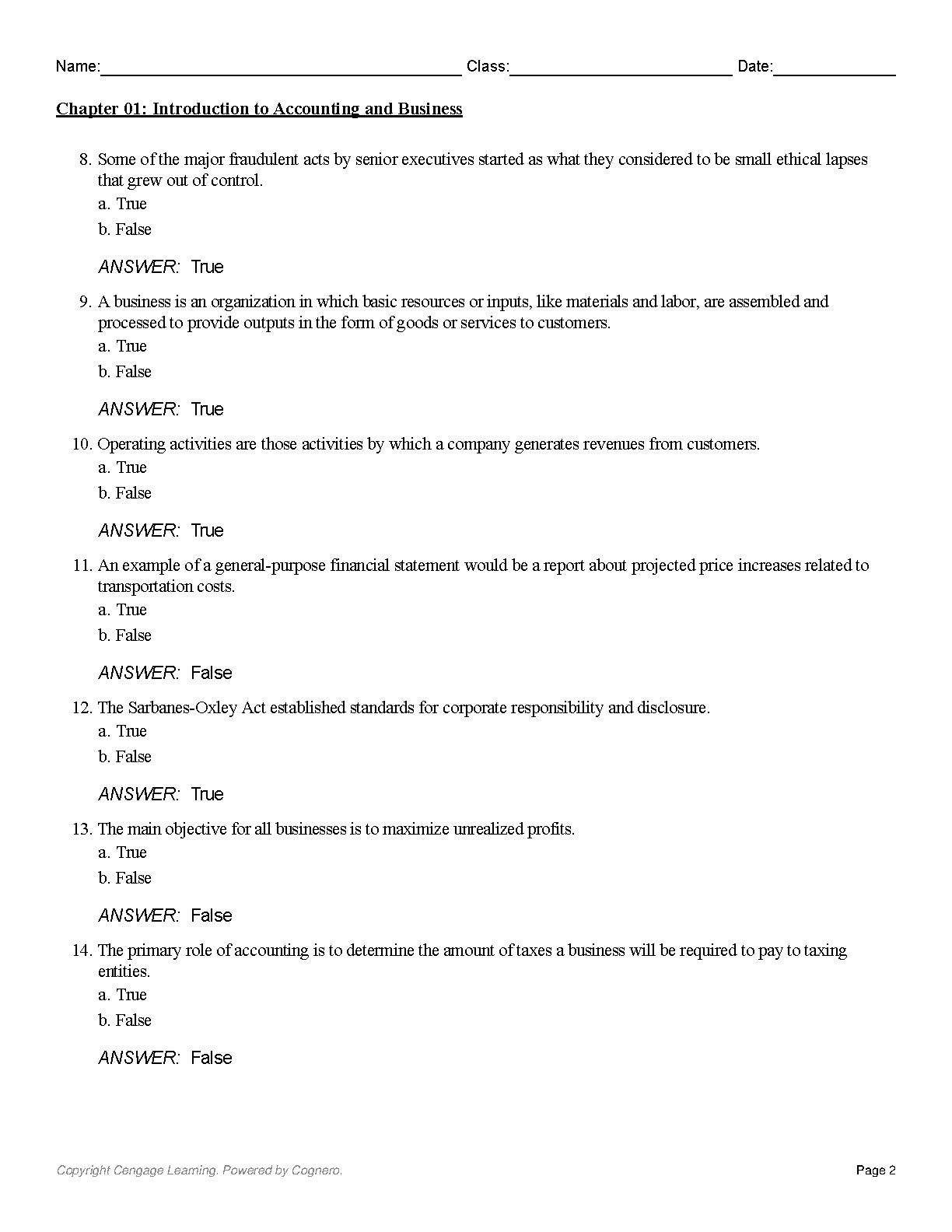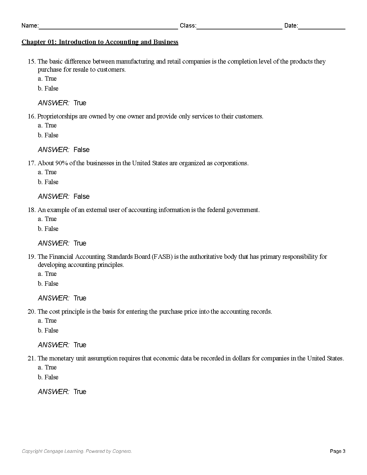 Test Bank for Financial and Managerial Accounting, 16th Edition by Carl S. Warren, Jefferson P. Jones, & William B. Tayler - Chapter 01