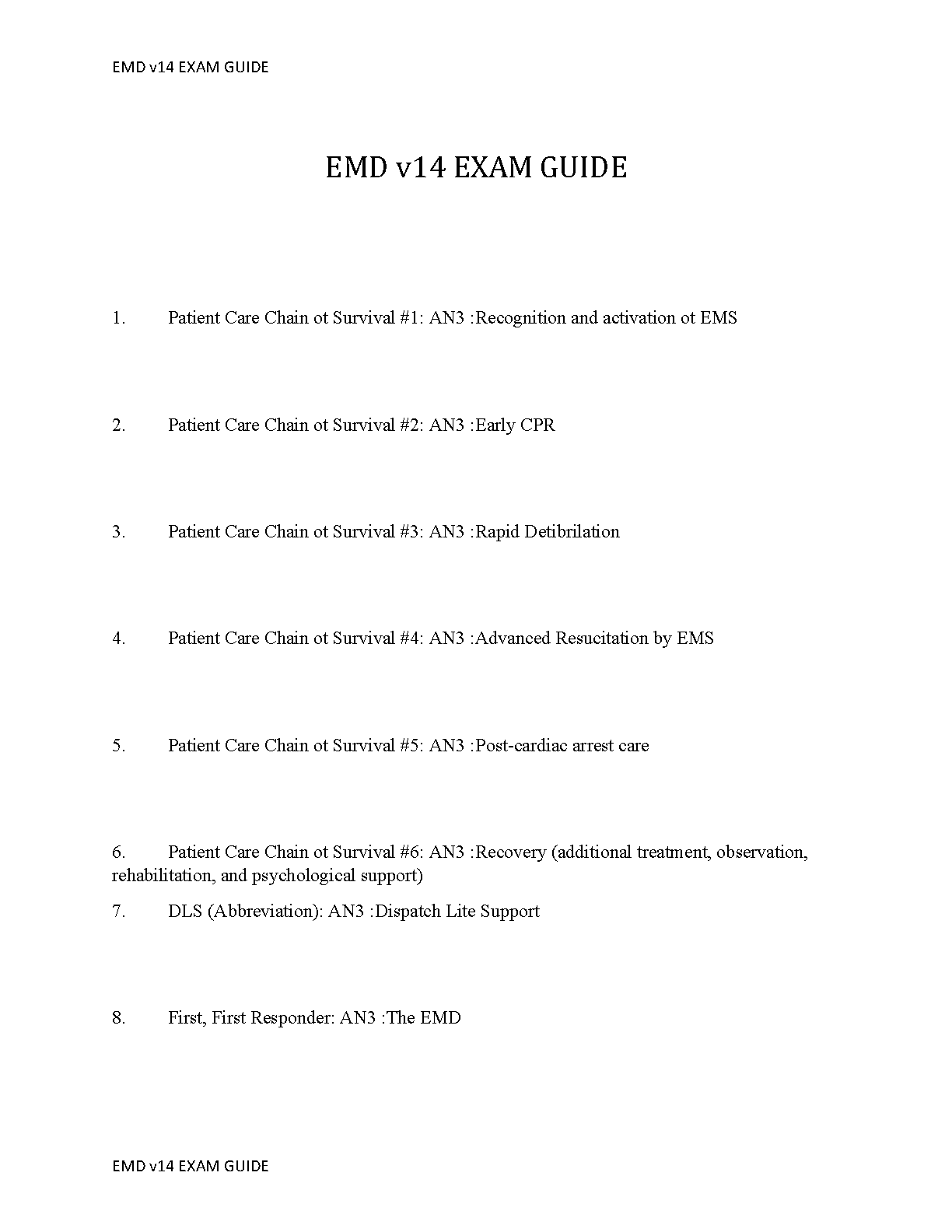 Ace your Emergency Medical Dispatcher certification with our expertly crafted EMD v14 Exam Guide for the 2025/2026 academic year. This comprehensive resource is your essential tool for mastering the Medical Priority Dispatch System (MPDS) v14. Dive deep into crucial topics, including a detailed breakdown of the complete Patient Care Chain of Survival, from initial recognition and EMS activation to post-cardiac arrest care and recovery. This guide simplifies complex concepts and provides the core knowledge needed to excel. Prepare with confidence and secure your certification on the very first attempt, avoiding the stress and expense of resits. Get your copy today and take the first step towards a successful career as an EMD.