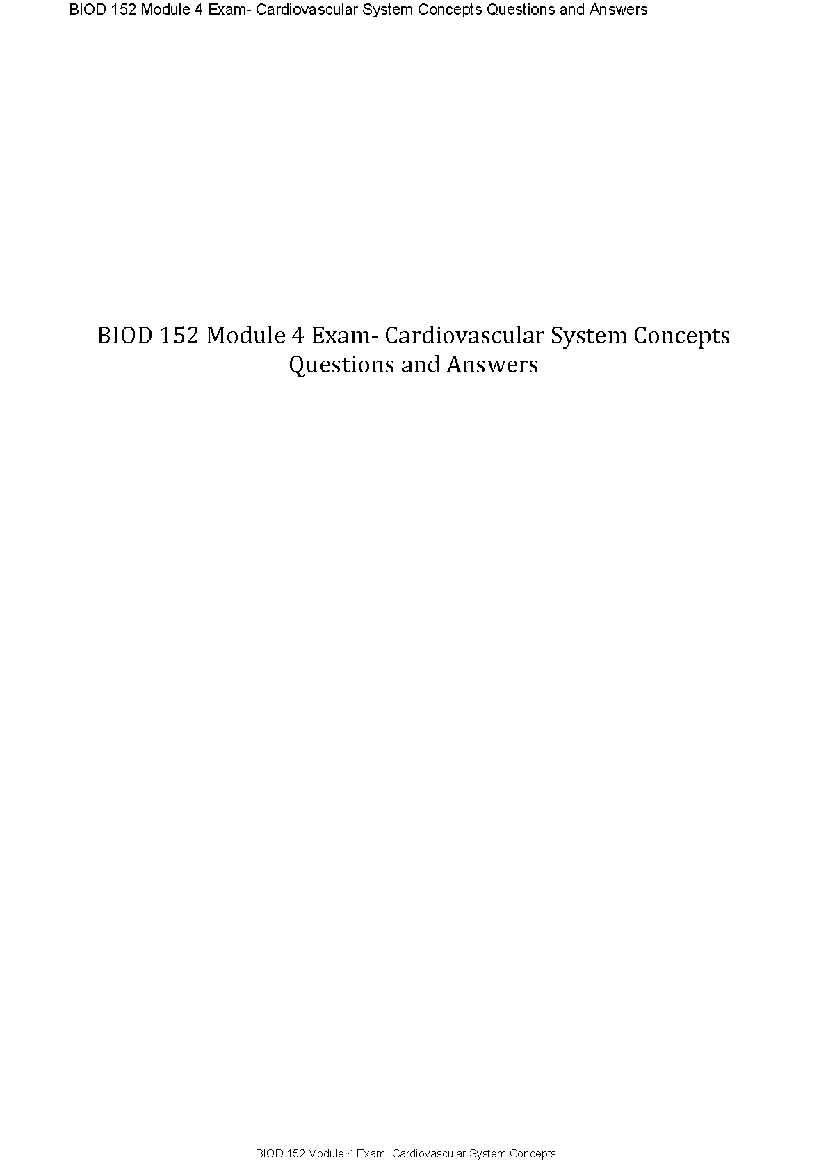 BIOD 152 Module 4 Exam: Cardiovascular System Concepts | Latest 2025/2026 Q&A Study Guide for Passing on Your First Attempt