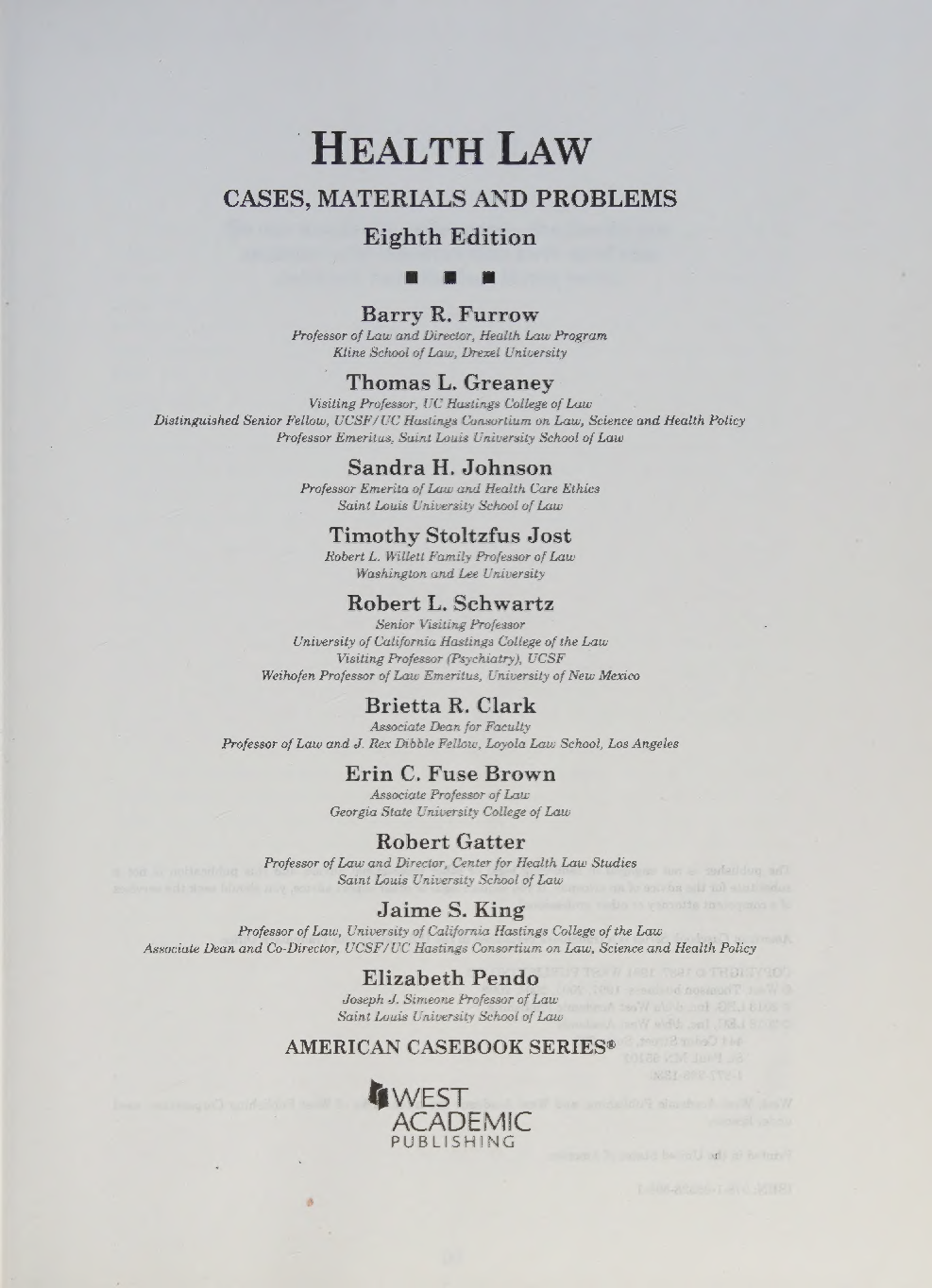 Test Bank for Health Law: Cases, Materials and Problems, 8th Edition by Barry R. Furrow, Thomas L. Greaney, Sandra H. Johnson, Timothy Stoltzfus Jost, Robert L. Schwartz, Brietta R. Clark, Erin C. Fuse Brown, Robert Gatter, Jaime S. King & Elizabeth Pendo
